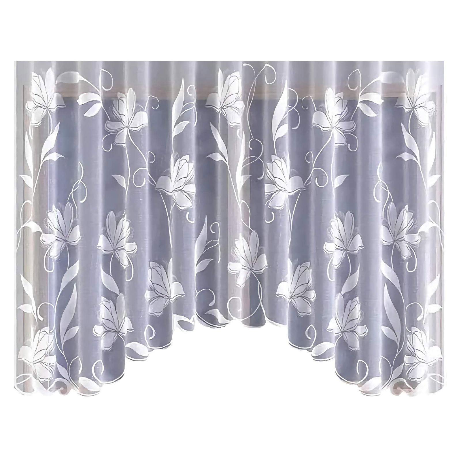 Dekoracyjny łuk stanowi eleganckie wykończenie dołu białej firany i podkreśli jej efektowny wygląd w każdym Twoim oknie.
