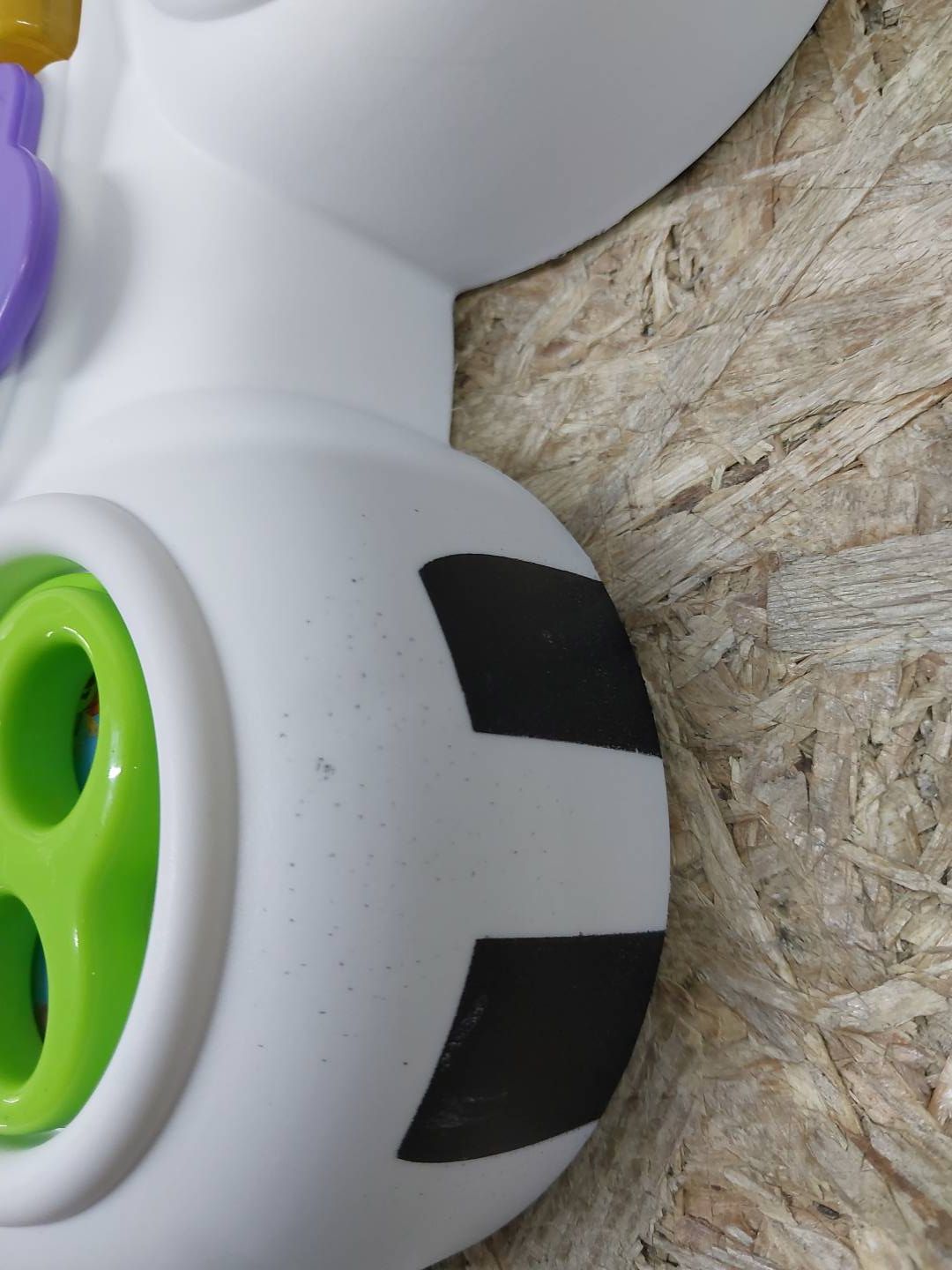 Zabawka oferuje wiele aktywności, które angażują dziecko zarówno podczas siedzenia, jak i chodzenia. Kolorowe elementy, książeczka do przekładania, klikające przyciski i podświetlane klawisze zachęcają do zabawy, rozwijając zręczność, ciekawość i umiejętności motoryczne.