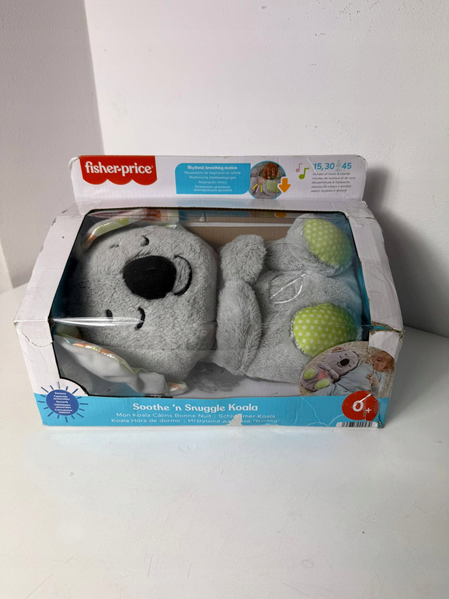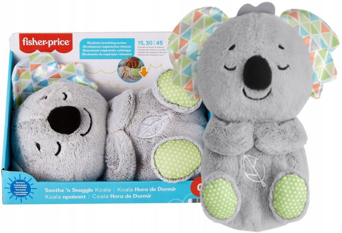 Koala Usypianka-Przytulanka Oddychający uspokajacz od Fisher-Price® to mięciutka zabawka z realistycznymi ruchami „oddychania”, która pomoże dziecku wyciszyć się i zasnąć. Ta urocza muzyczna przytulanka ma podświetlany brzuszek, który porusza się w górę i w dół, naśladując ruch oddychania i uspokajając maluszka. Ten mięciutki uspokajacz dla niemowląt nadaje się do prania w pralce (po wyjęciu części elektronicznej) i ma materiały o różnych fakturach, dzięki czemu zapewnia małym rączkom mnóstwo ciekawych odkryć.