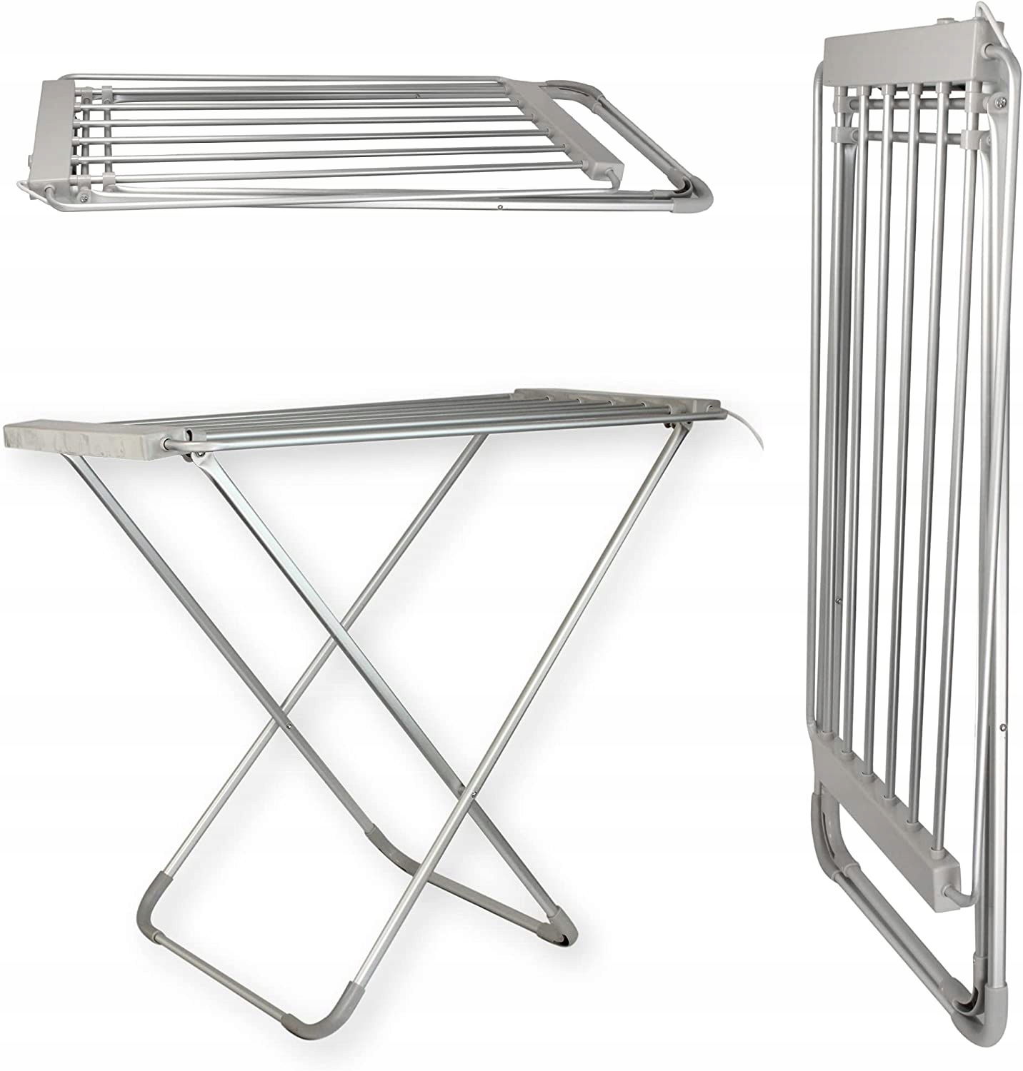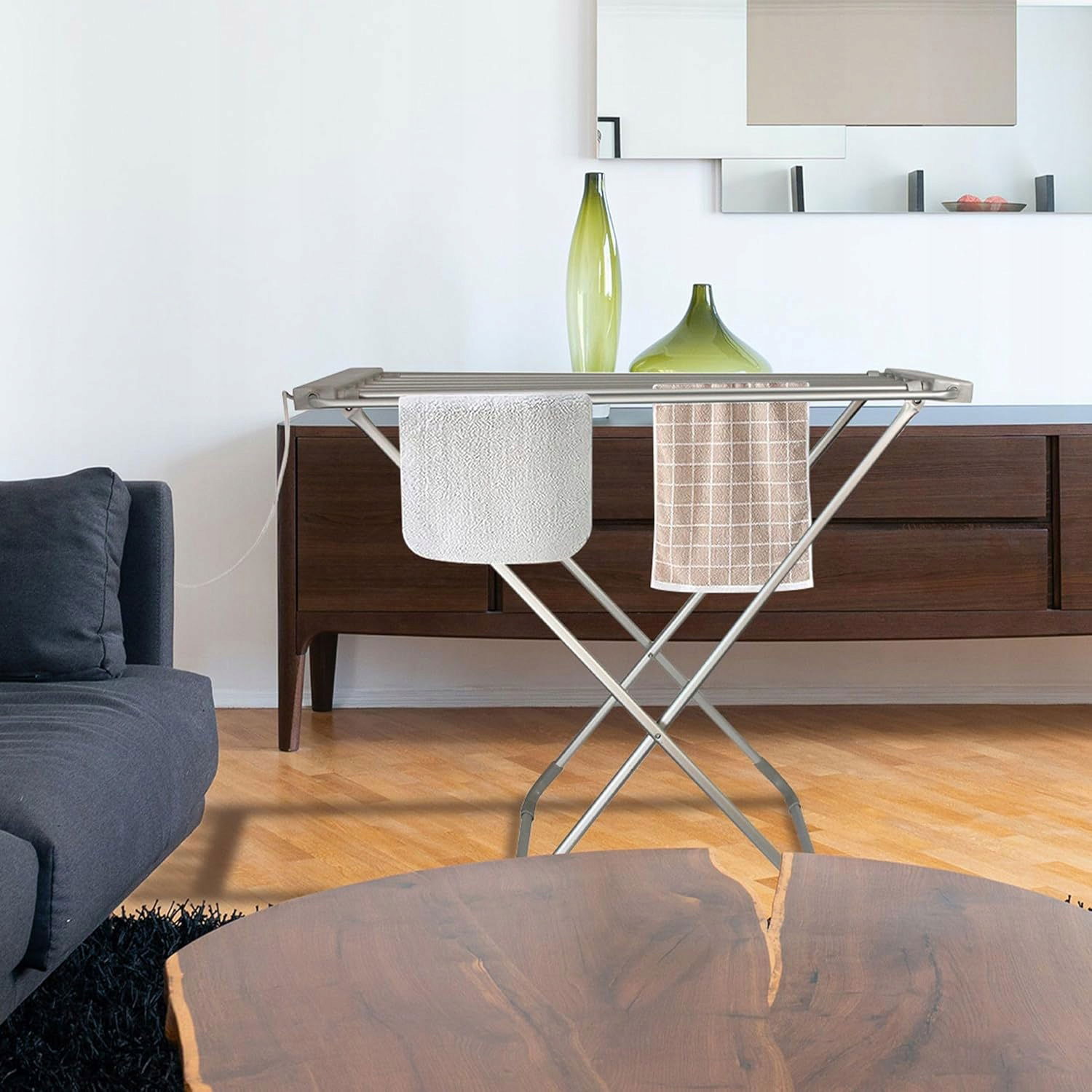 ♨️ - SUSZARKA ELEKTRYCZNA - Suszarka do ubrań pozwala idealnie powiesić pranie bez zagnieceń i śladów, przyspiesza suszenie i ułatwia prasowanie. Jest elektryczna i szybko suszy pranie dzięki 8 aluminiowym prętom grzejnym, których temperatura wzrasta do około 45-55°C.