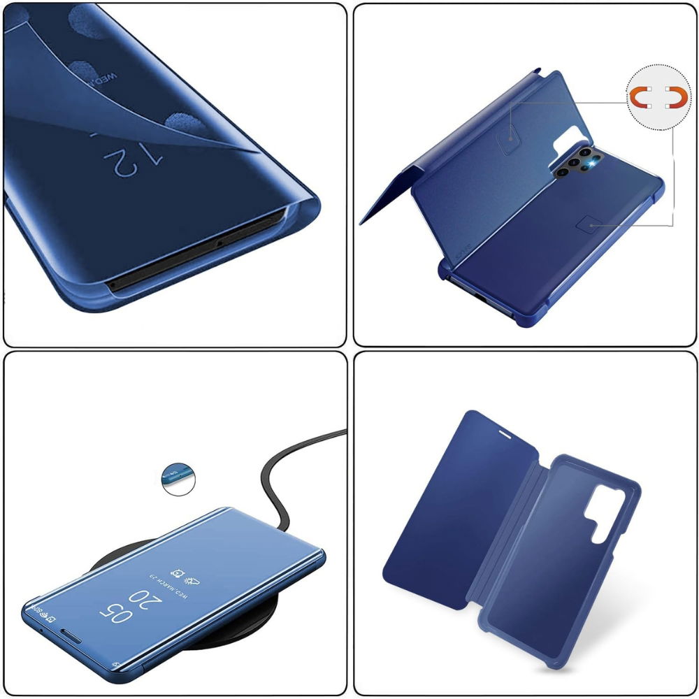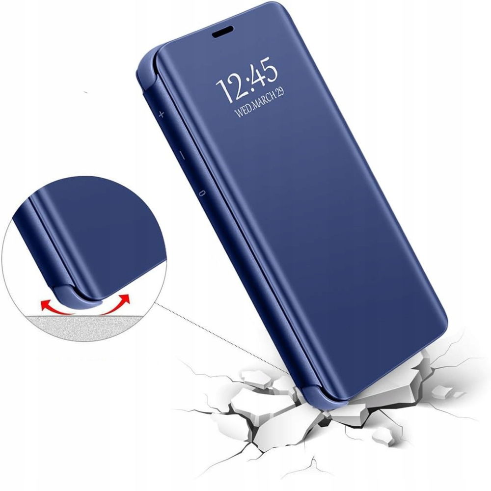 - Typ: Etui z klapką, lusterkiem i funkcją podstawki
