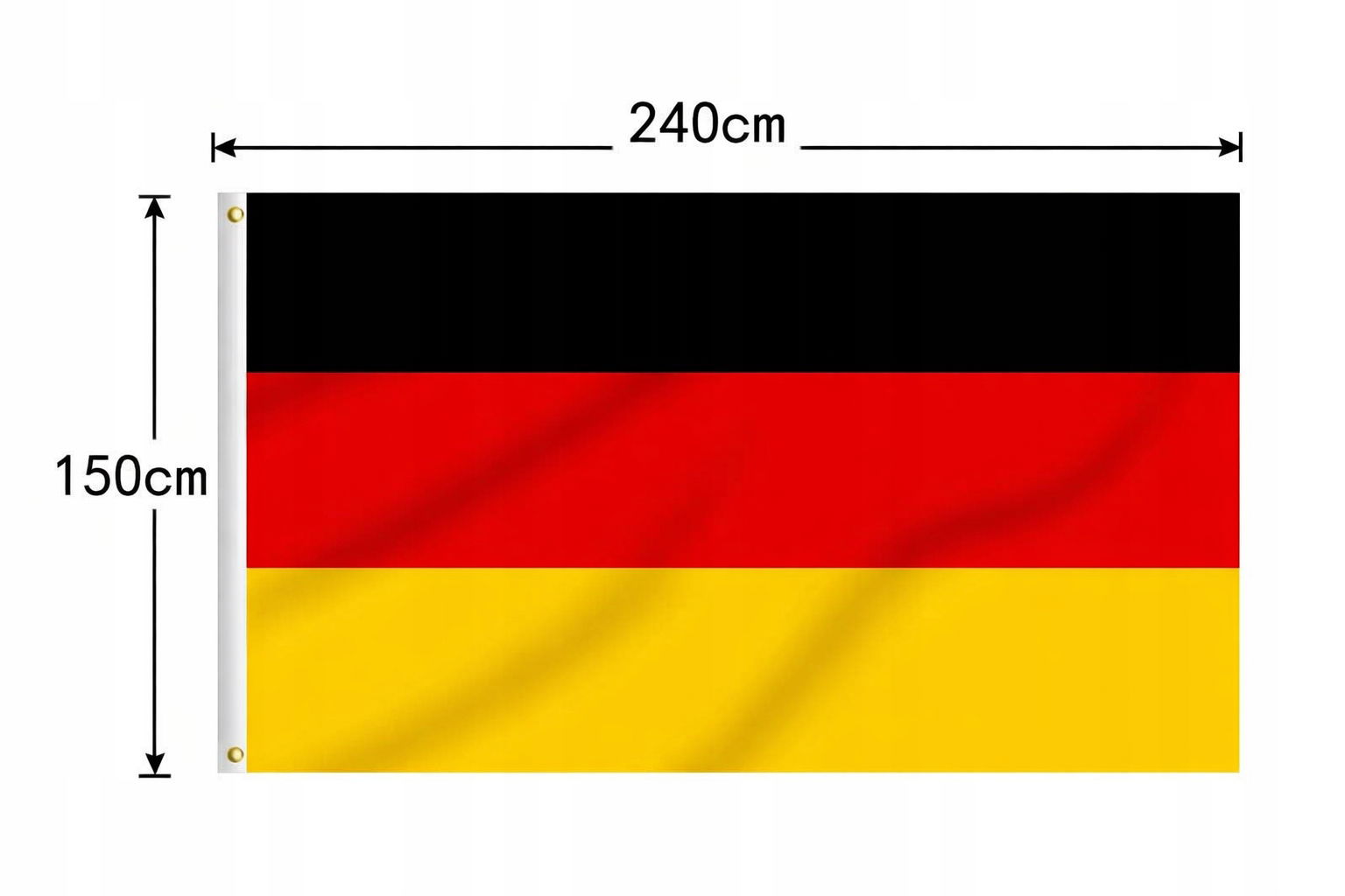 Flaga Niemiec 150 x 240 cm odporna na UV, do wnętrz i na zewnątrz