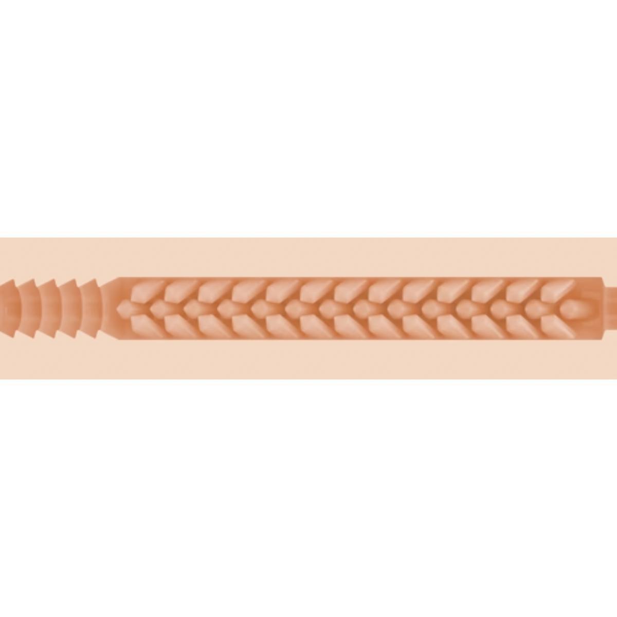 The inner sleeve features a textured structure with ribs and nubs to enhance stimulation.