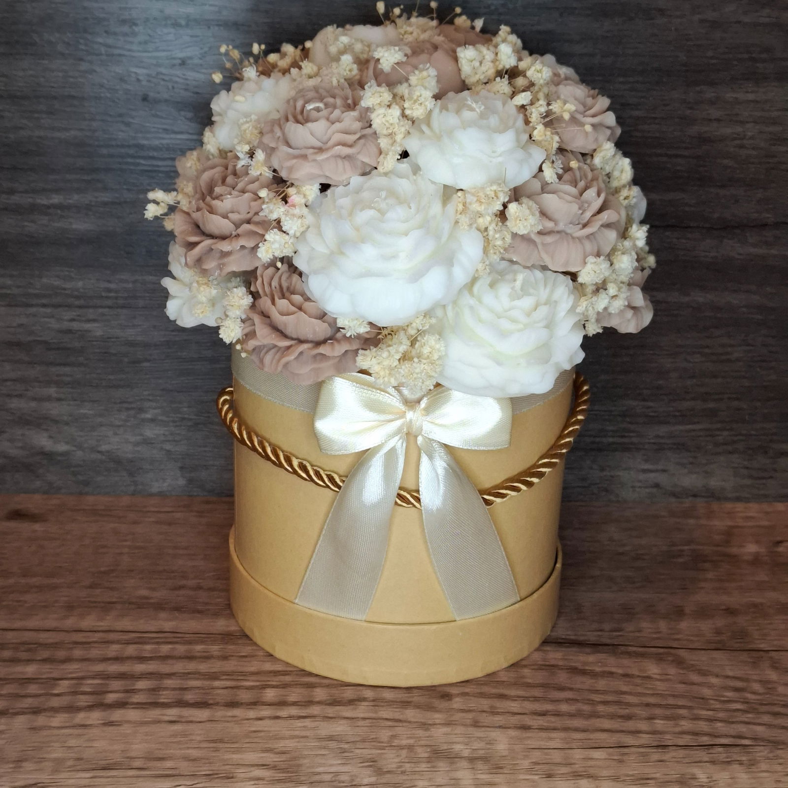 Zaskocz swoich najbliższych wyjątkowym prezentem, który łączy w sobie elegancję i nowoczesność! Nasz Flower Box z świecami sojowymi w kształcie kwiatów piwonii to nie tylko unikalny element dekoracyjny, ale także doskonały sposób na wyrażenie uczuć i podziękowań. Stworzony z pasją, ten wieczny bukiet będzie cieszył oko przez długi czas, przypominając o wyjątkowych chwilach.