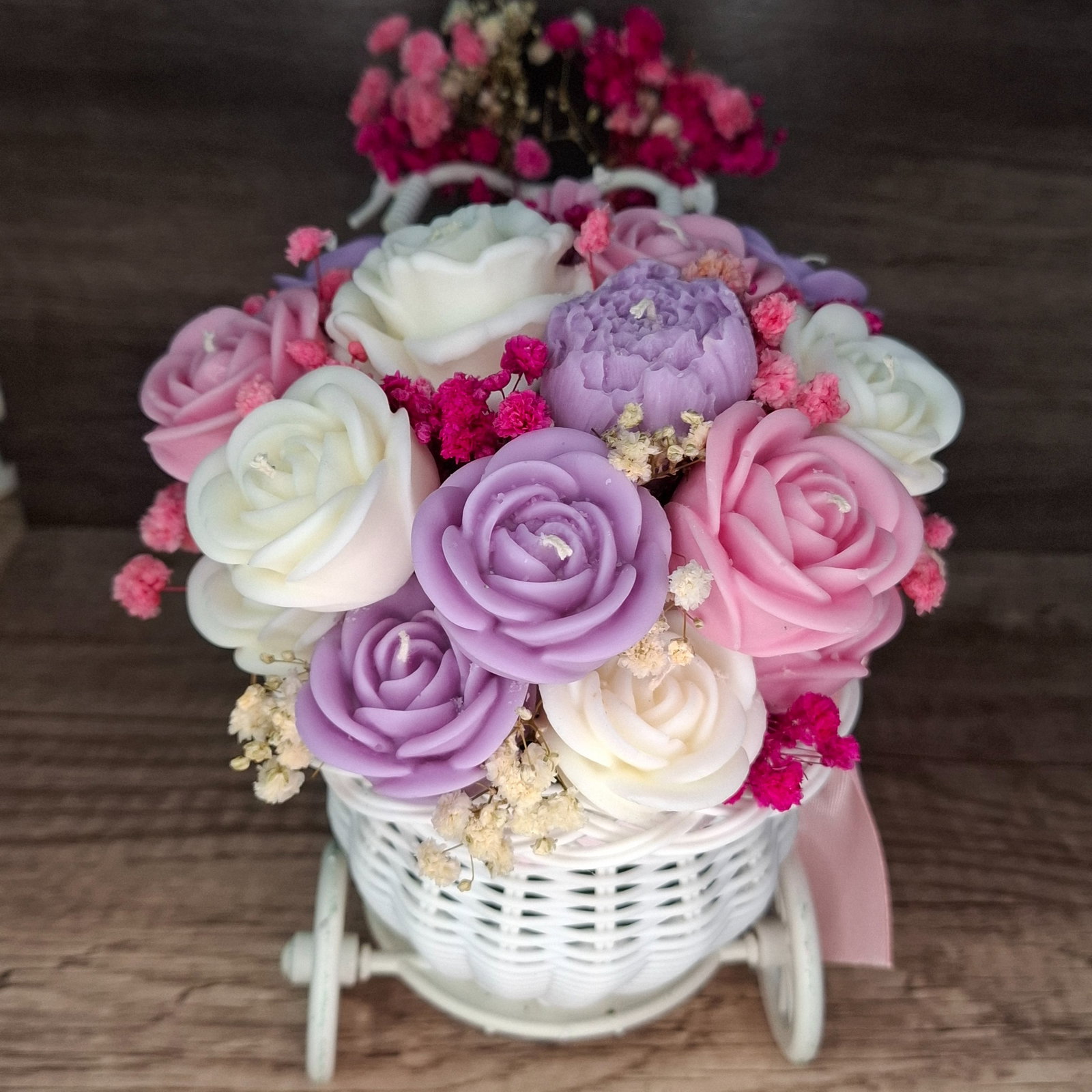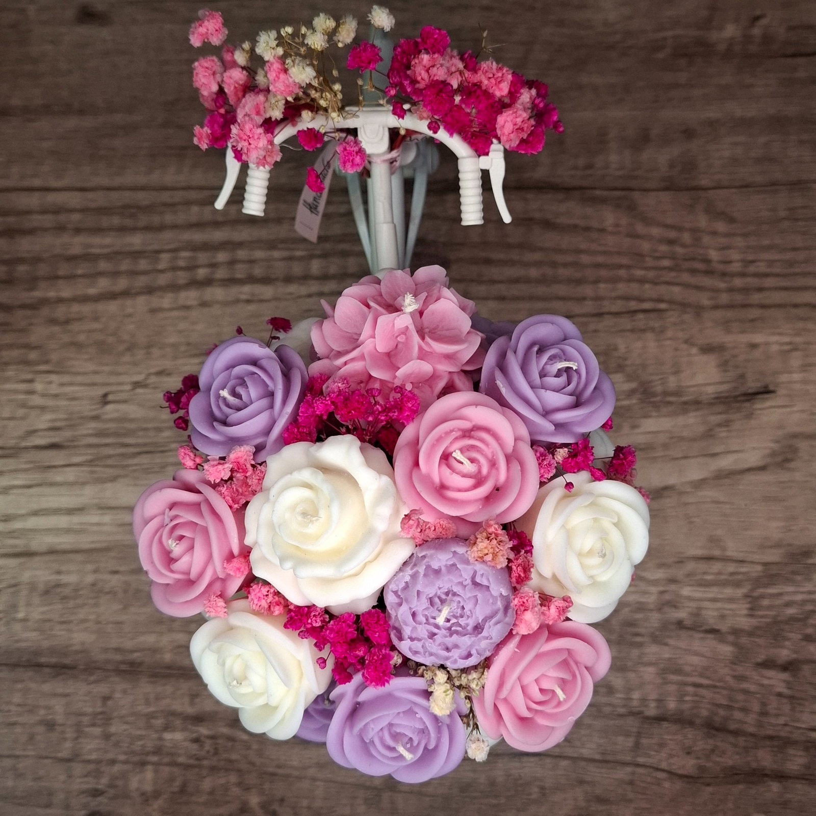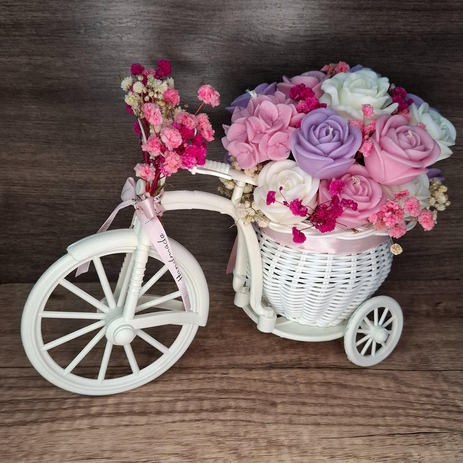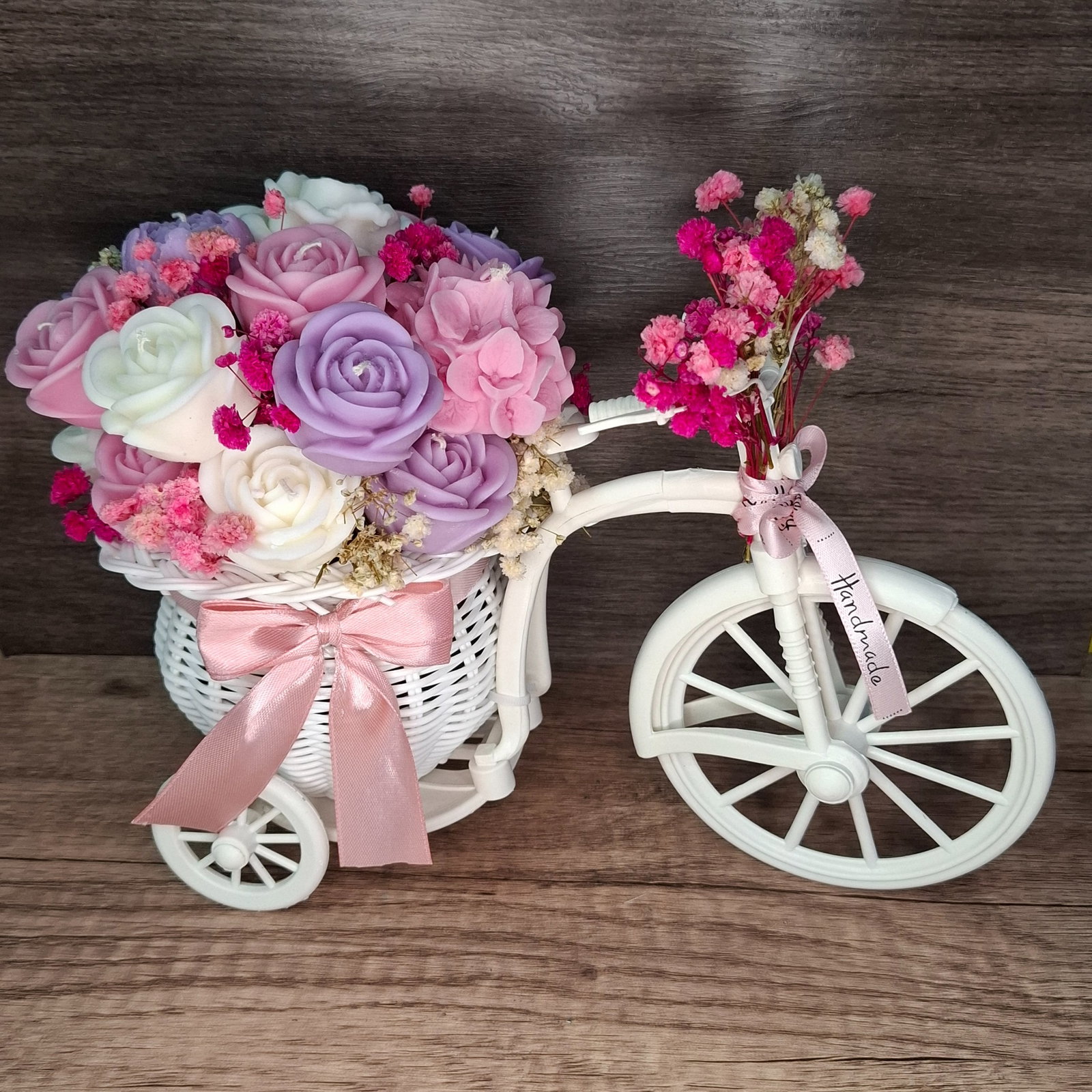 Flower Box Świece Sojowe Wieczny Bukiet Kwiaty Prezent Urodziny Rower