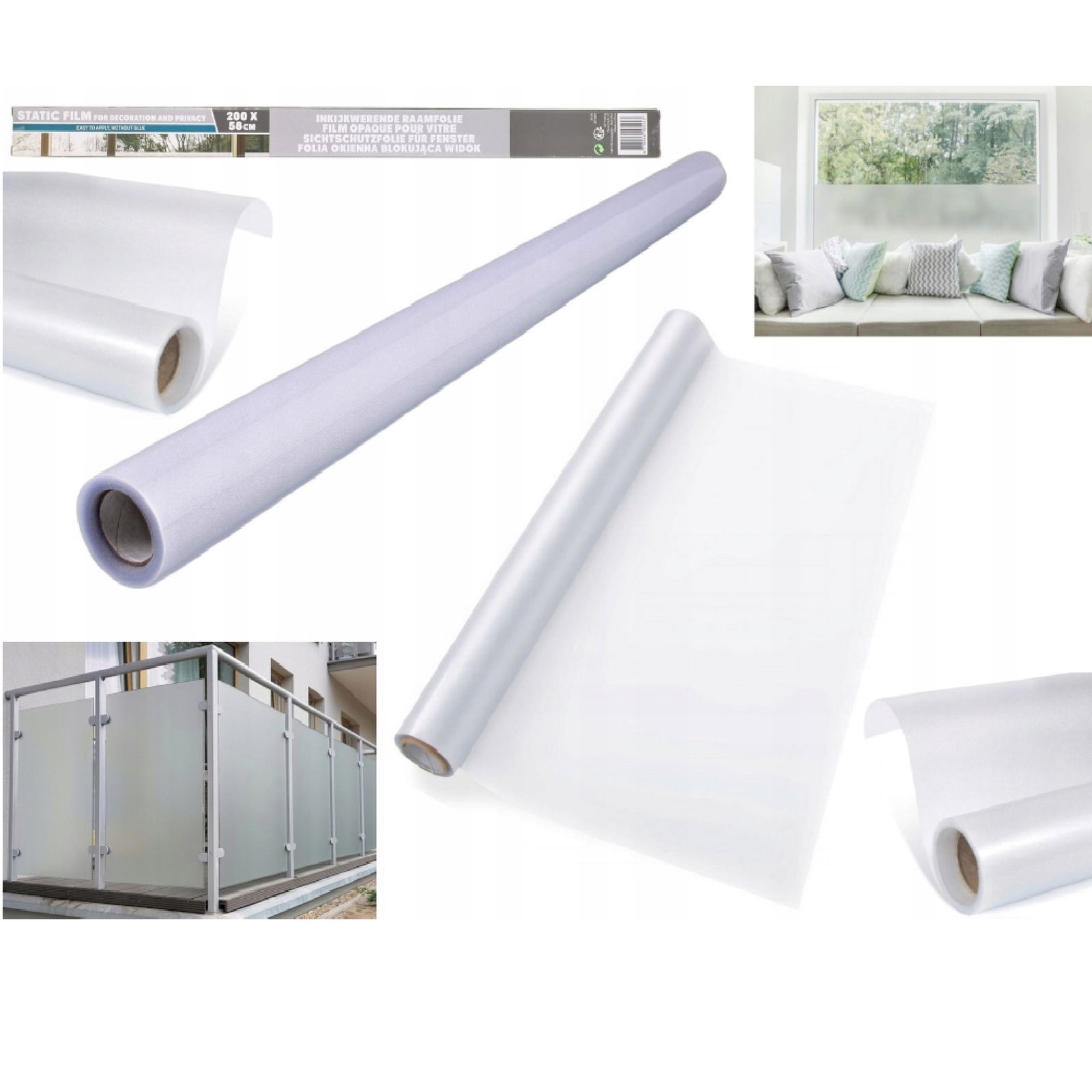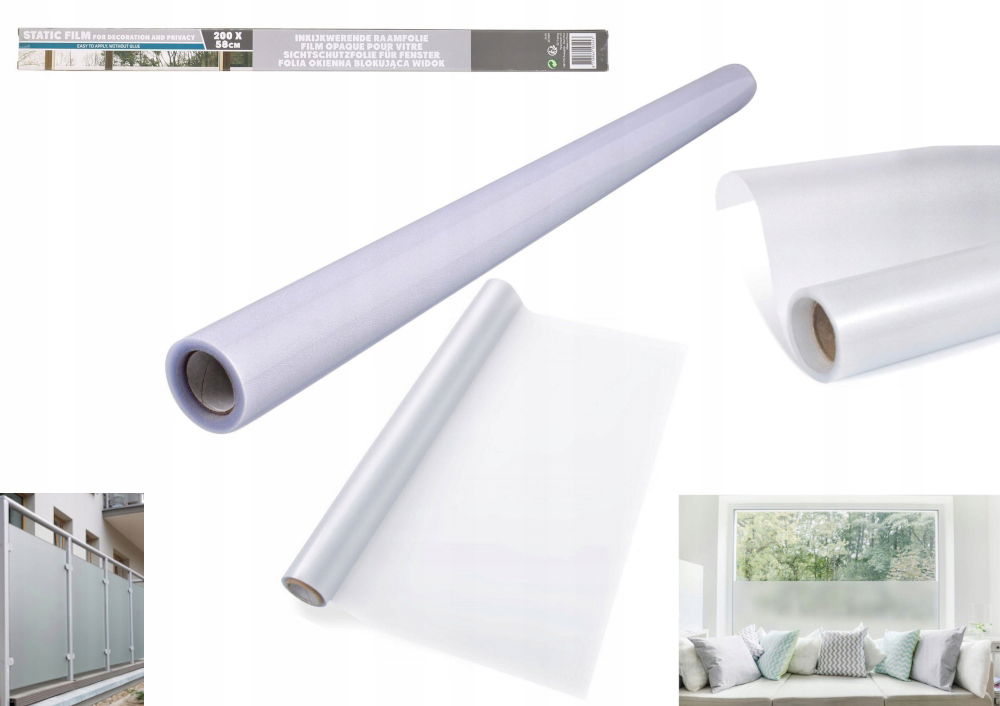 Folia okienna okleina do szyb okien mleczna szron gotowa 200 x 58 cm matowa