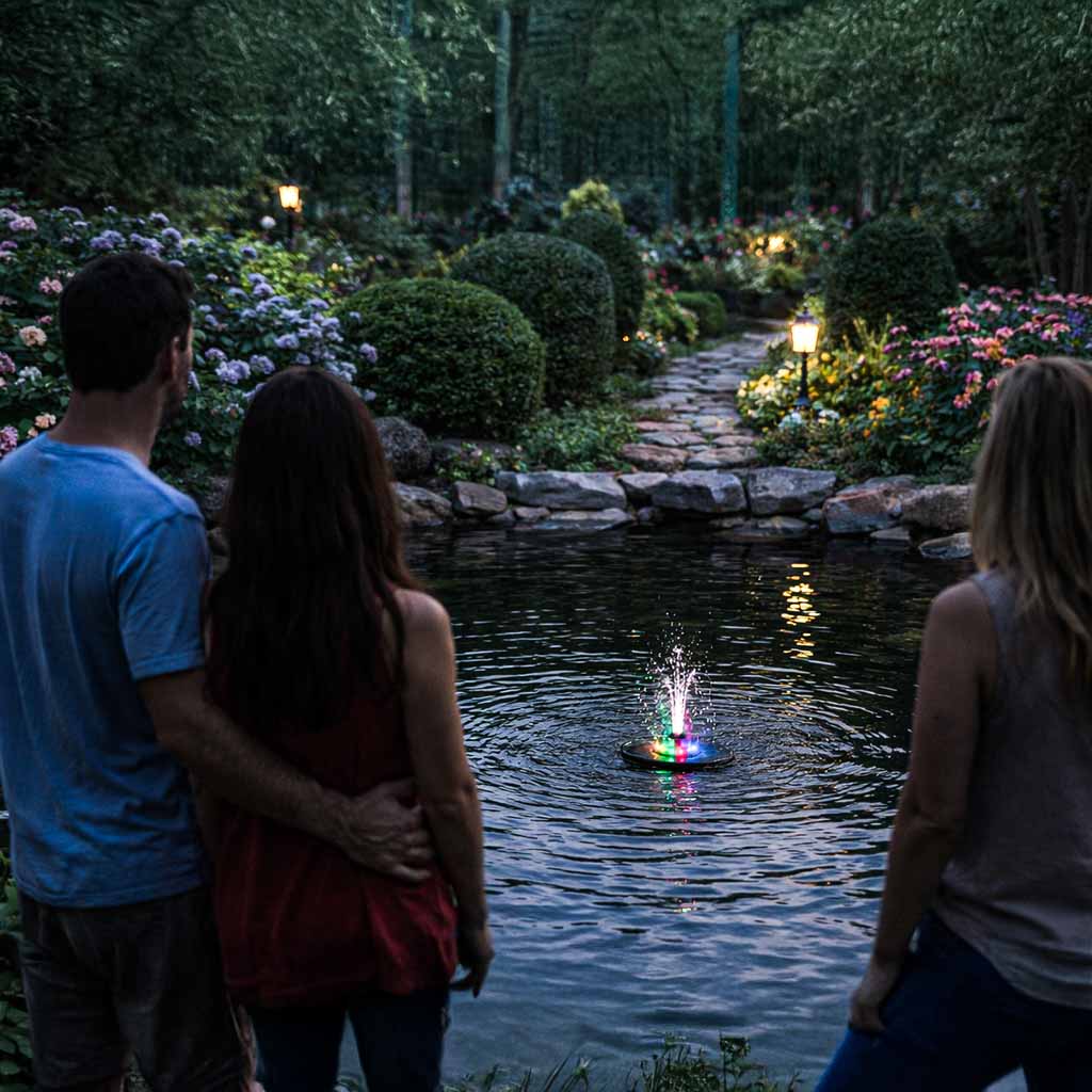 Fontanna Solarna do Oczka Wodnego Ogrodowa Pompa Pływająca LED RGB Dysze