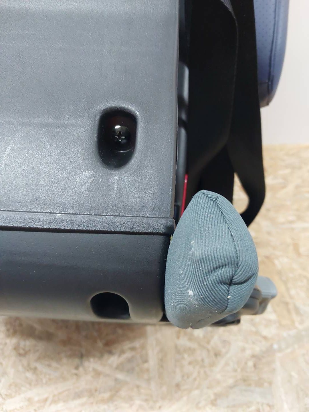 PRODUKT POSIADA ZARYSOWANIA Z TYŁU FOTELIKA, NAKŁADKI NA ISOFIX POSIADAJĄ PRZETARCIA.