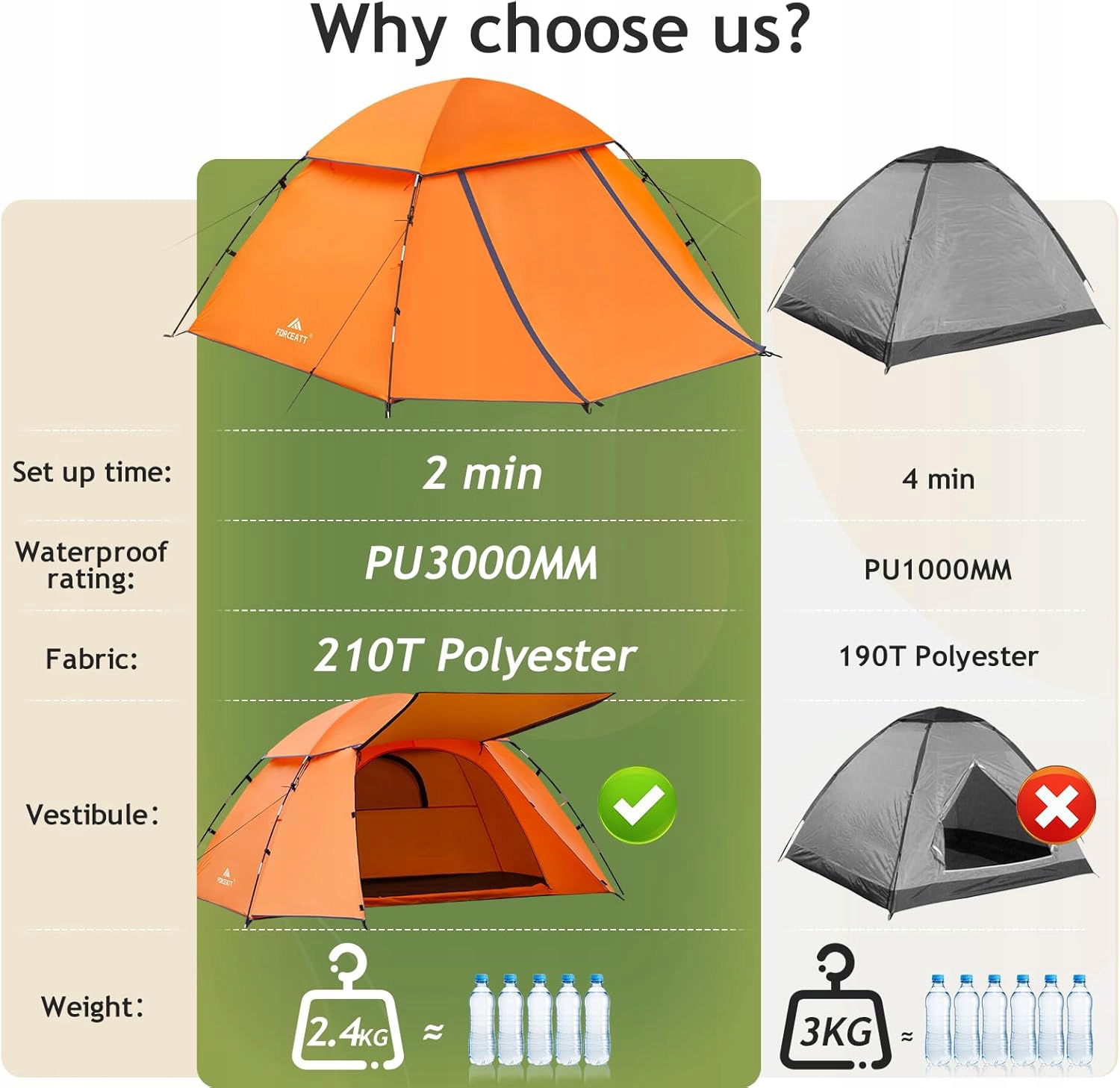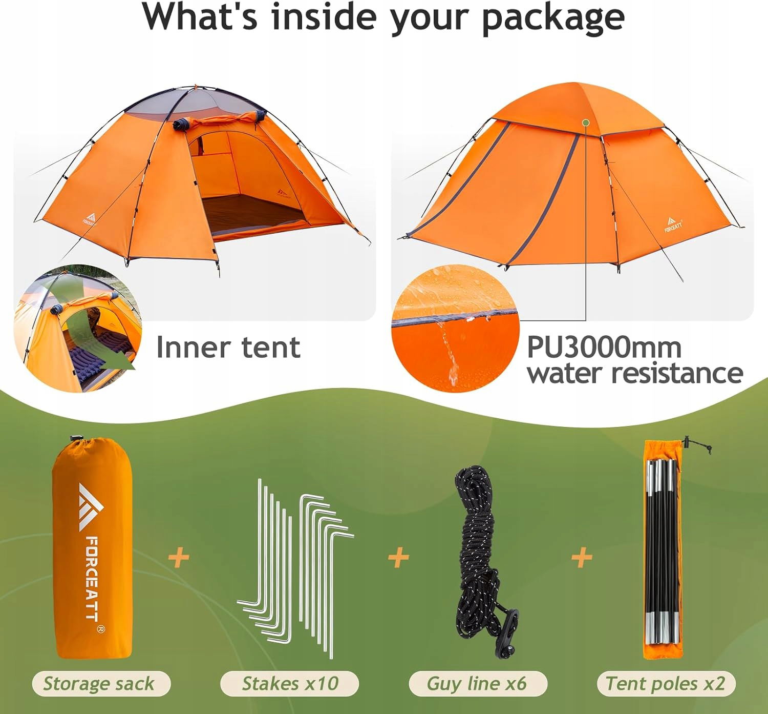Forceatt Namiot dla 1-2 osób ultralekki wodoszczelny PU3000 mm pomarańczowy