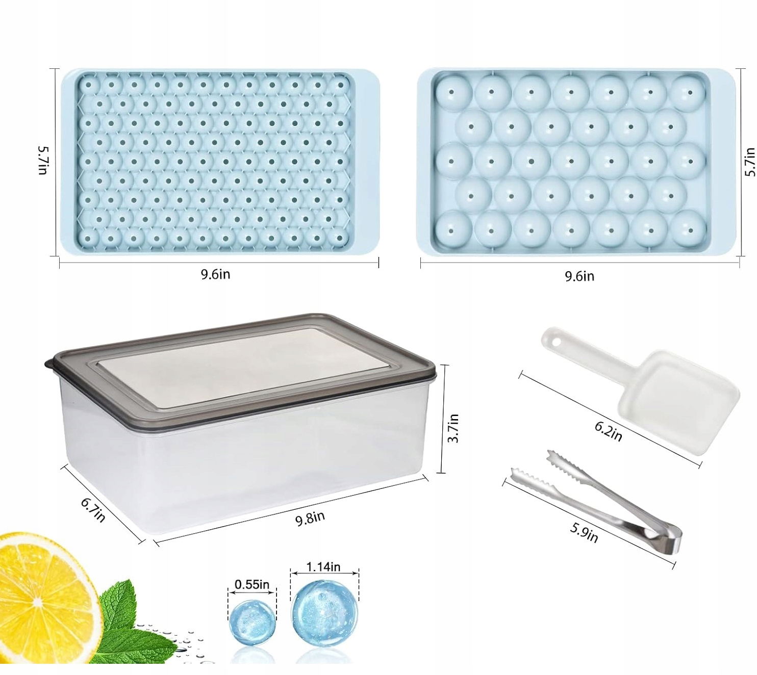 - Zaktualizowany zestaw wielofunkcyjny: W zestawie znajdują się dwa różne rodzaje krążków (dwa duże i jeden mały), a opakowanie zawiera: Okrągłe foremki do lodu z pokrywką Szczypce do lodu Szufelkę do lodu Pojemnik na kostki lodu