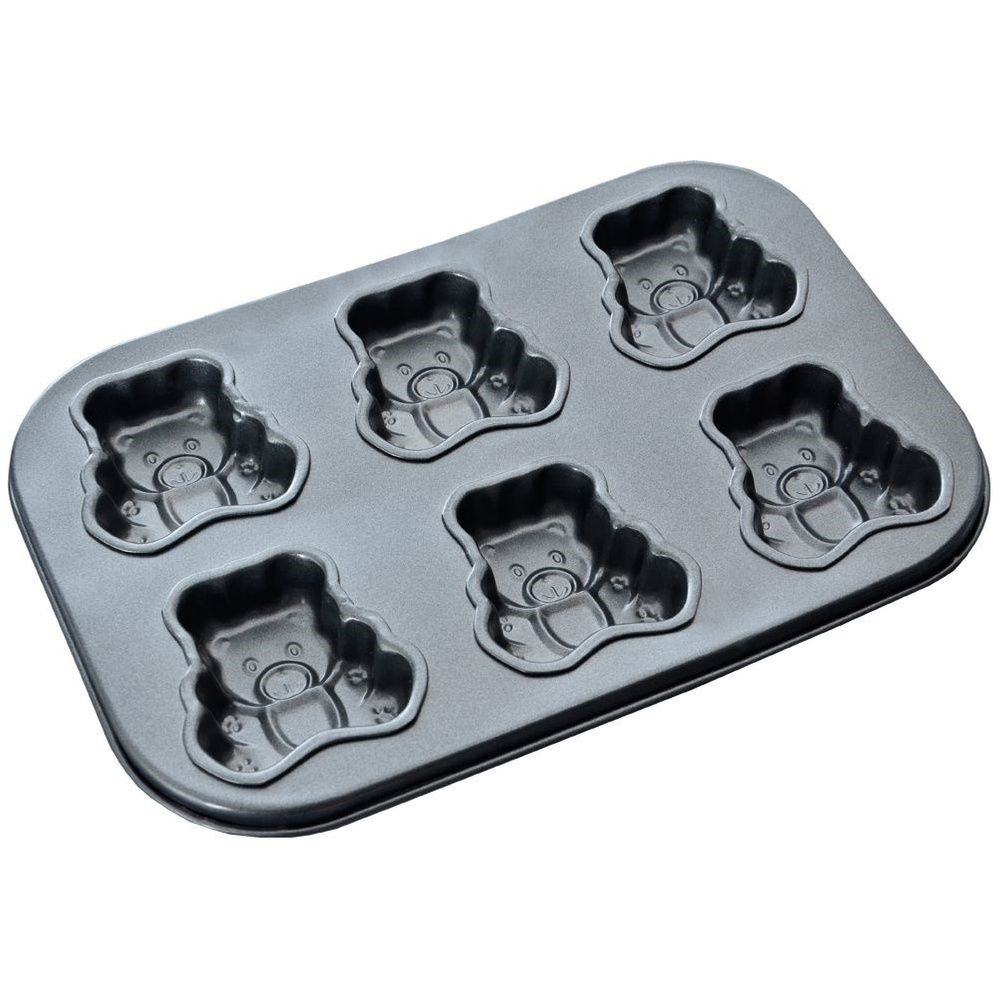Forma do pieczenia ciastek z powłoką nieprzywierającą. Foremka pozwala upiec sześć babeczek lub ciasteczek w kształcie misiów. Sprawdzi się do przygotowania popularnych pieczonych misiów ze słodkim nadzieniem. Przydatna w każdym domu, jest łatwa w czyszczeniu i wygodna w użytkowaniu. Ciasto nie przywiera i łatwo się wyciąga. Idealna dla każdej mamy, gwarantujemy zadowolenie dzieci. Wykonana z materiałów bezpiecznych dla zdrowia i neutralnych dla żywności.