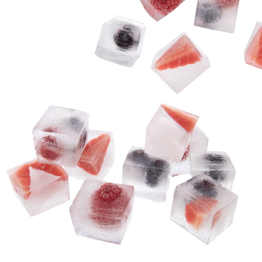 Uniwersalne zastosowanie - W foremce poza kostkami lodu możemy przygotować również mrożone sorbety, soki oraz buliony. Kostki wykorzystamy do wody, napojów oraz drinków alkoholowych.