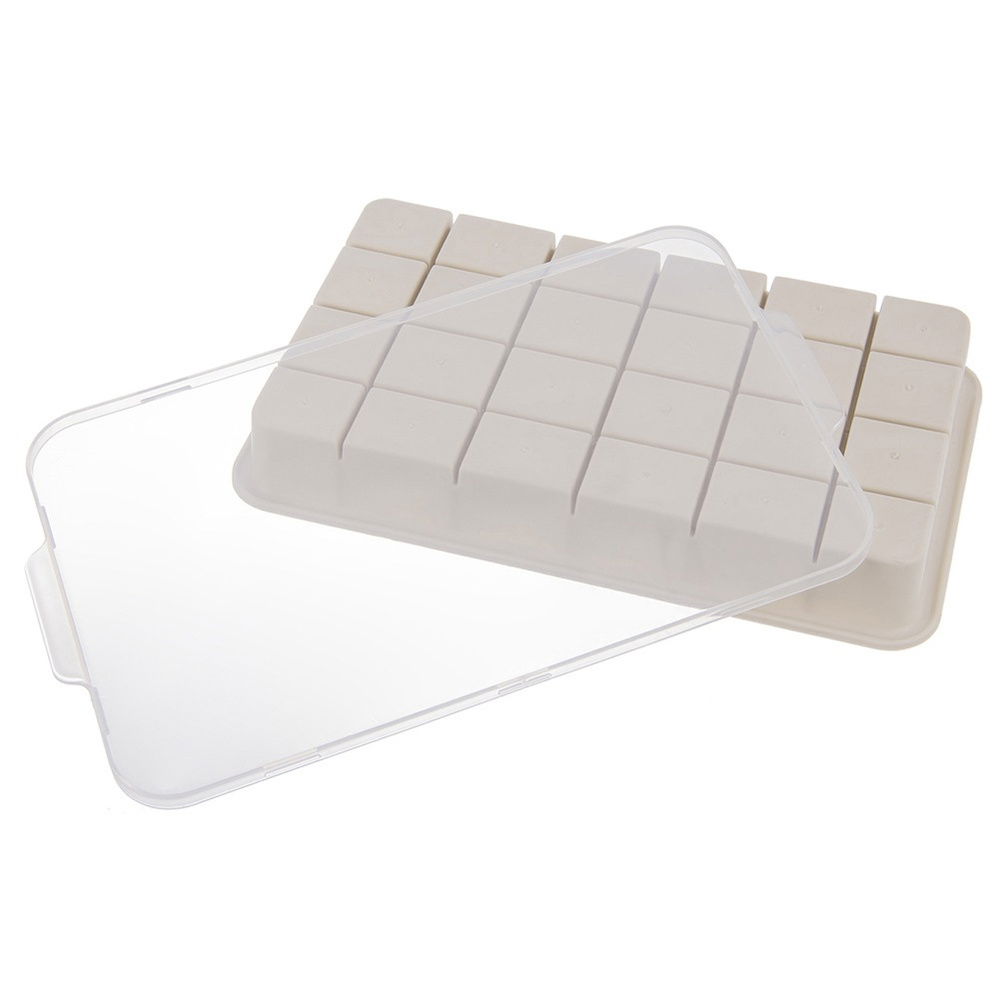 Zamykana za pomocą pokrywki - Foremka posiada pokrywkę, która zapobiega wylewaniu wody podczas przenoszenia foremki do zamrażarki. Pokrywka wykonana z tworzywa w przezroczystym kolorze.