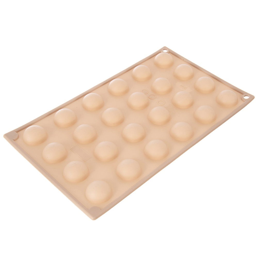 Forma do przygotowania prali i czekoladek - Forma do przygotowywania czekoladowych pralin lub małych ciastek, czekoladek w kształcie małych półkul. Forma ma wymiary 30 x 17,5 x 1,5 cm. Dzięki niej przygotujemy aż 24 sztuki pralin. Przygotowane praliny mają średnicę 2,8 x 2,8 cm.