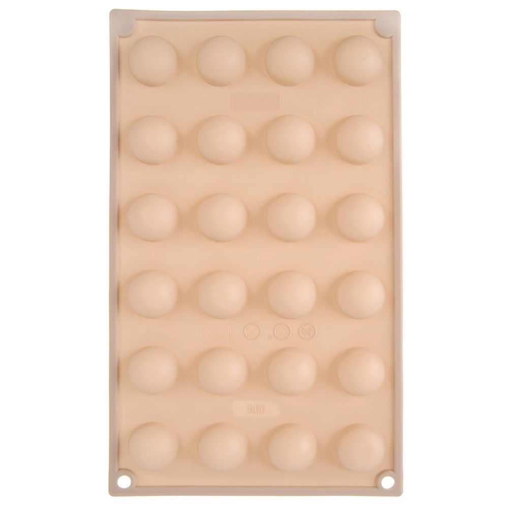 Silikonowa foremka pozwalająca przygotować 24 praliny. Możemy przygotować w niej praliny, czekoladki a także ciastka w kształcie półkuli. Foremka nie wchłania zapachów i smaków. Ciasto nie przywiera, idealnie się wyciąga. Do wypieku nie używa się żadnego tłuszczu czy mąki. Forma silikonowa jest lekka, elastyczna, zajmuje mało miejsca i jest odporna na zmiany temperatury. Bardzo dobrze przewodzi ciepło.