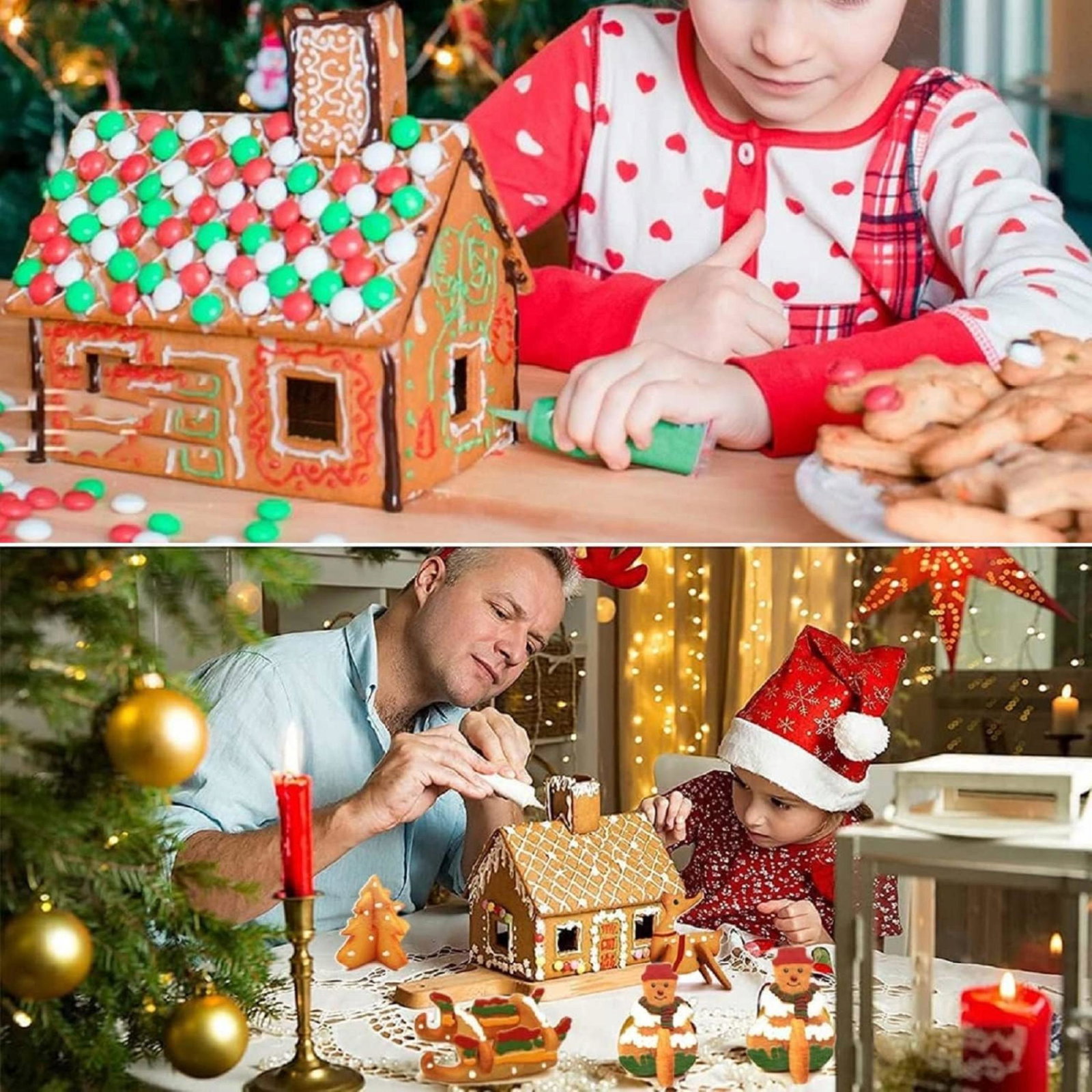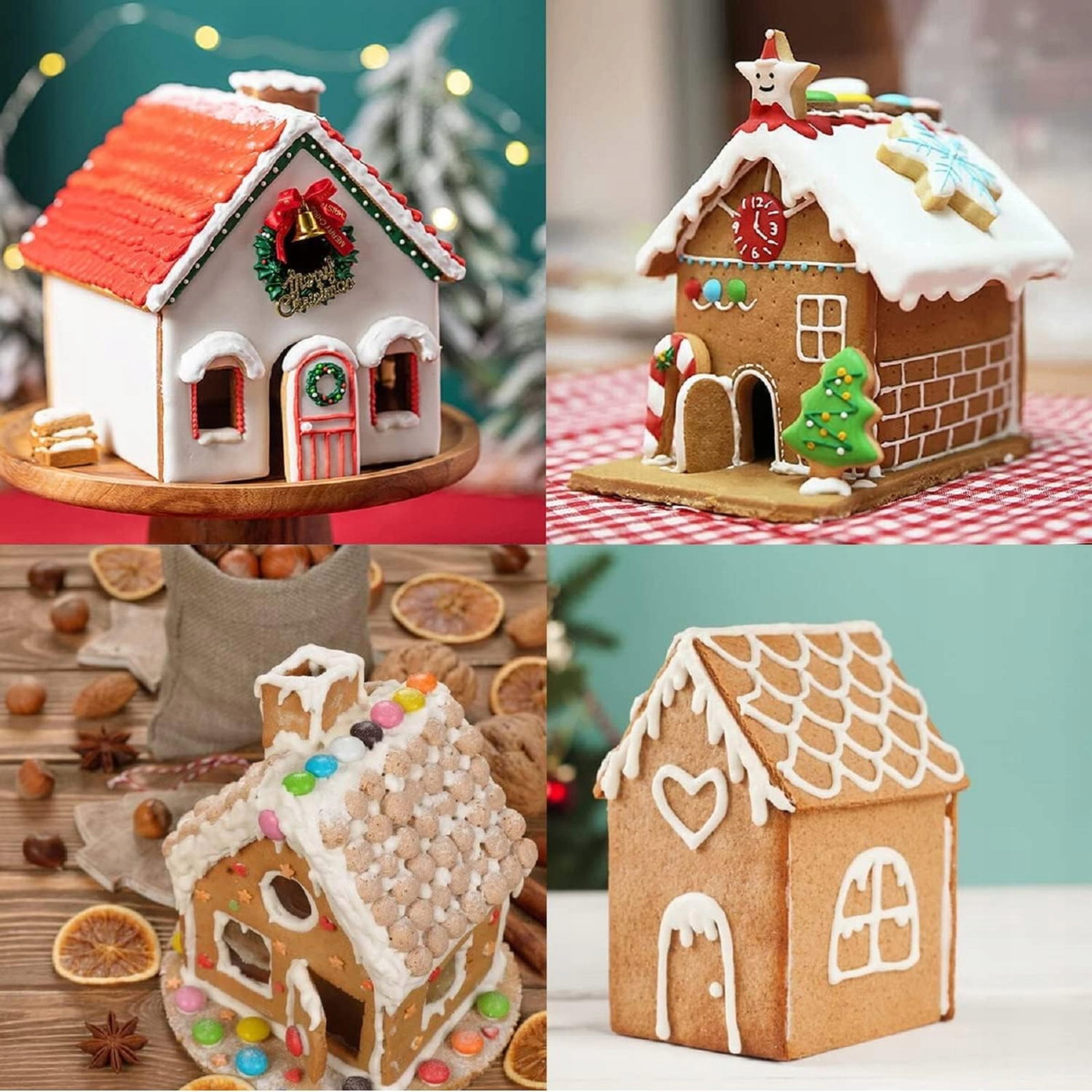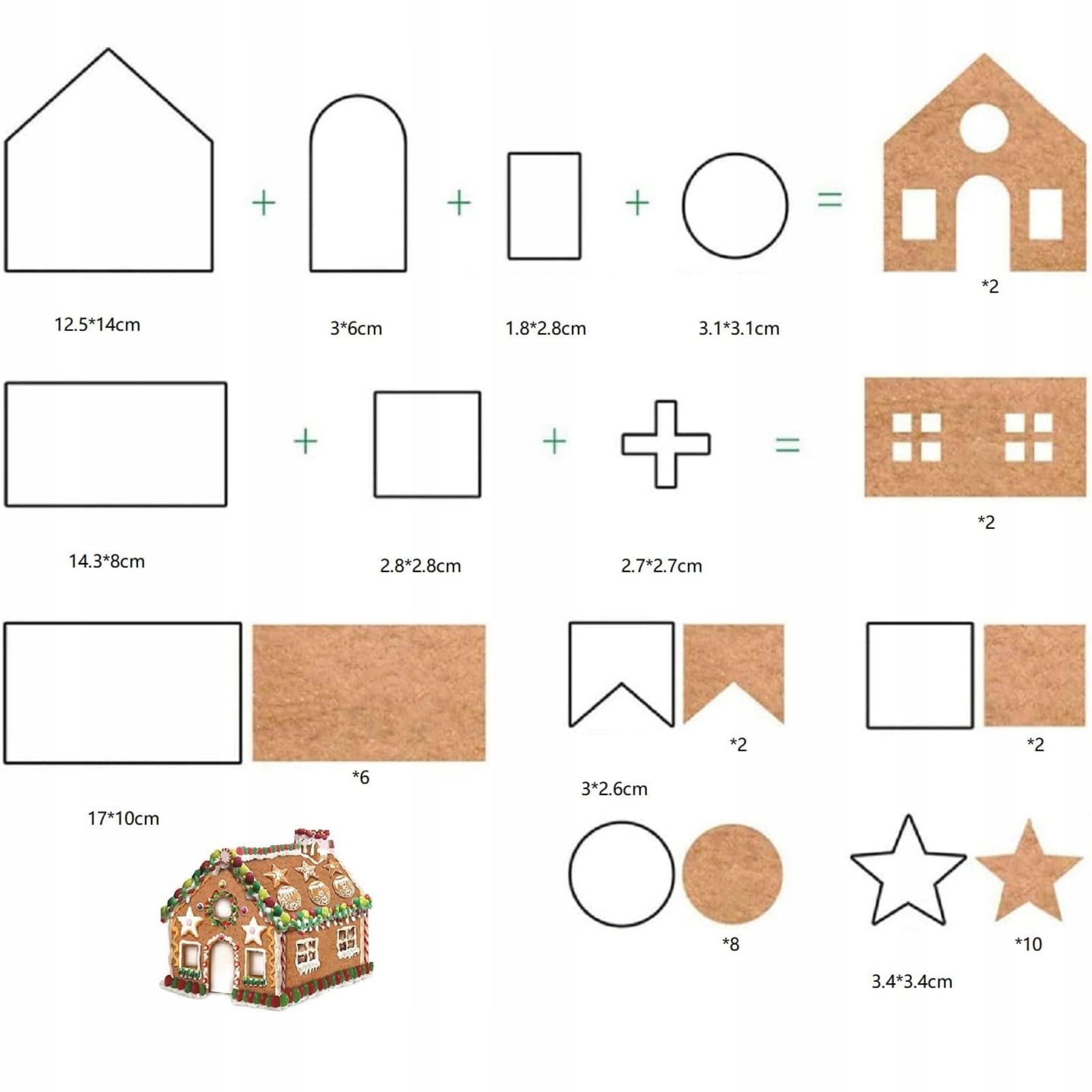 ⭐ Zawiera 10 różnych foremek, które umożliwiają przygotowanie wszystkich elementów piernikowego domku. Dzięki temu możesz stworzyć idealnie dopasowaną konstrukcję, w tym ściany, dach, okna i ozdoby.