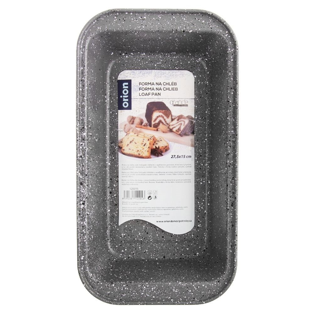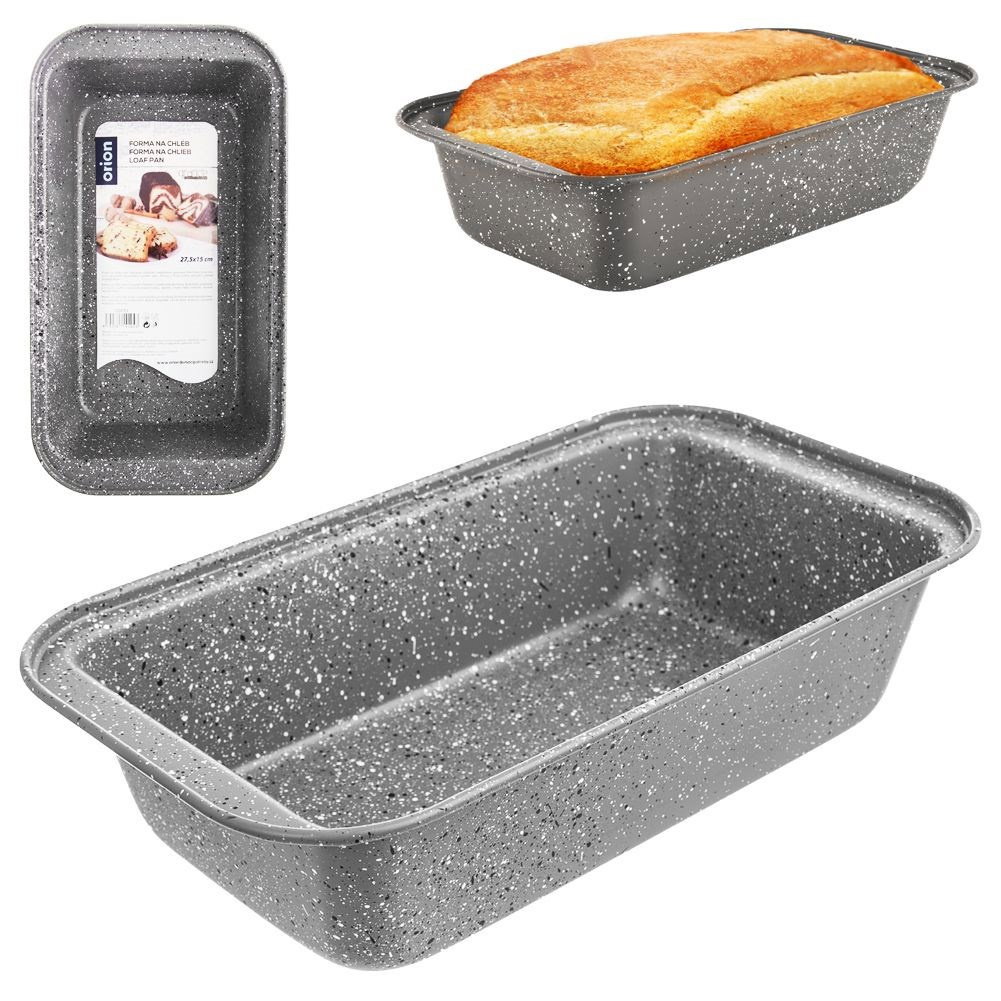 PRAKTYCZNA - Nieprzywierająca forma do pieczenia chleba, keksu lub pasztetu. Idealnie sprawdzi się do wypiekania ucieranych ciast oraz drożdżowych. Forma ma wymiary zewnętrzne 27,5 x 15 x 7 cm. NIEPRZYWIERAJĄCA - Wykonana z najwyższej jakości metalu, który pokryty jest nieprzywierającą powłoką granitową GRANDE. Powłoka granitowa zapobiega przywieraniu potraw, nawet przy minimalnej ilości tłuszczu. ODPORNA - Materiał jest odporny na wysokie temperatury do max. 230°C. Nie chłonie zapachów, nie nasiąka płynami. Przystosowana do użytku w piekarnikach gazowych oraz elektrycznych. EFEKTOWNA - Z jej pomocą przygotujesz wypieki, które będą prezentowały się efektownie. Forma nada bochenkowi chleba odpowiedni kształt. Oryginalna forma prezentacji potraw zachwyci Twoich gości. WYGODNE UŻYTKOWANIE - Formę do chleba wyczyścimy w łatwy sposób, nadaje się do mycia w zmywarce do naczyń. Dodatkowo, wyposażona jest w wygodne uchwyty po obu stronach, co znacznie ułatwia jej użytkowanie. Prostokątna forma do pieczenia chleba, ciast ucieranych oraz drożdżowych. Idealna do pieczenia również babki. Odpowiedni kształt formy pozwoli na upieczenie keksu lub pasztetu w odpowiednim kształcie. Nieprzywierająca powłoka pozwoli na wygodne przygotowanie wypieków, przy użyciu małej ilości tłuszczu. Po wyjęciu z niej wypieki będą prezentować się niezwykle efektownie. Łatwa w czyszczeniu i wygodna w użytkowaniu. Wykonana z materiałów bezpiecznych dla zdrowia i neutralnych dla żywności. Oryginalny produkt czeskiej marki Orion. Wyprodukowano zgodnie z europejskimi standardami.