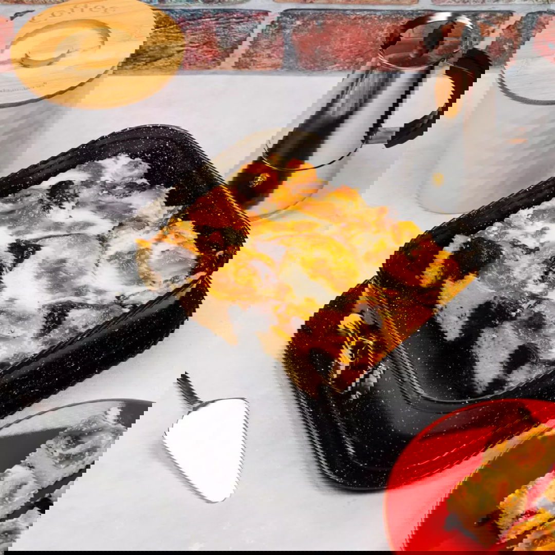 - Powierzchnia z powłoką nieprzywieralną ułatwiająca pieczenie - Wysokiej jakości materiał formy szybko i równomiernie nagrzewa się - Powierzchnia zapewnia doskonałą dystrybucję ciepła co zapewnia wysoką efektywność pieczenia - Powłoka nieprzywieralna sprawia, że mycie jest wyjątkowo łatwe. Zaleca się mycie ręczne - Nie należy używać ostrych przedmiotów, aby nie zarysować powłoki nieprzywieralnej - Polecane do codziennego użytku w kuchni - Wymiary: 27,5 x 27,5 x 6,8 cm