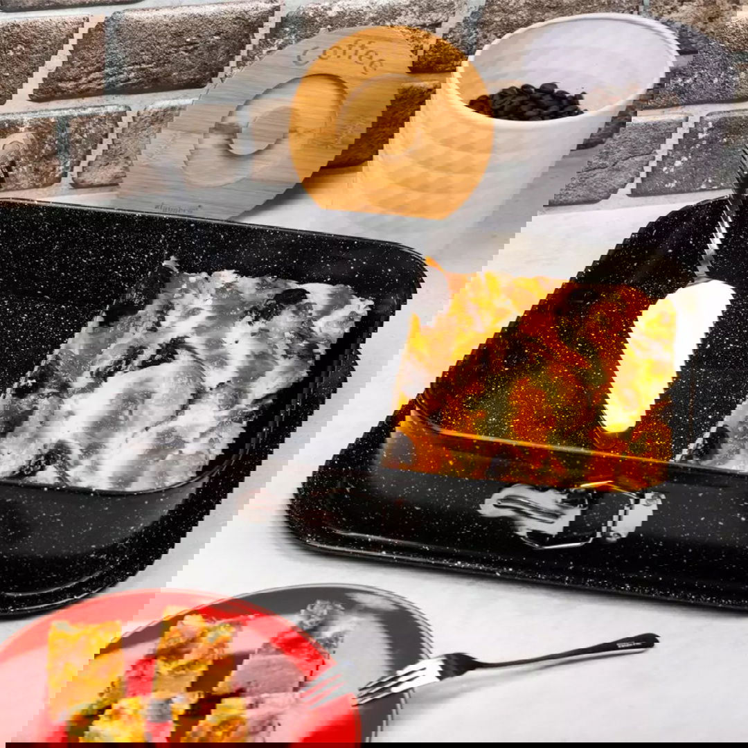 - Powierzchnia z powłoką nieprzywieralną ułatwiająca pieczenie - Wysokiej jakości materiał formy szybko i równomiernie nagrzewa się - Powierzchnia zapewnia doskonałą dystrybucję ciepła co zapewnia wysoką efektywność pieczenia - Powłoka nieprzywieralna sprawia, że mycie jest wyjątkowo łatwe. Zaleca się mycie ręczne - Nie należy używać ostrych przedmiotów, aby nie zarysować powłoki nieprzywieralnej - Polecane do codziennego użytku w kuchni - Wymiary: 39 x 27 x 7,5 cm