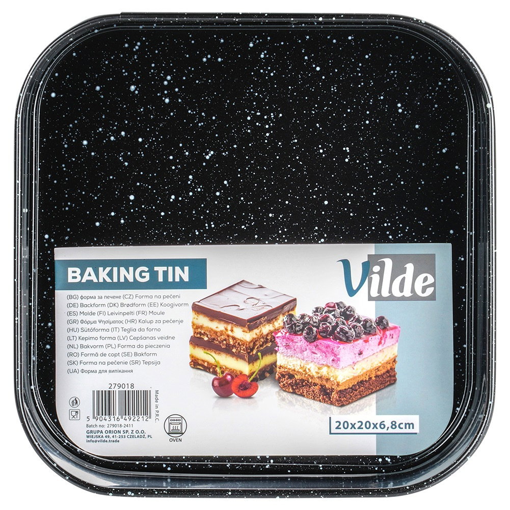 Kwadratowa forma do pieczenia - Praktyczna forma w kwadratowym kształcie, idealna do wypieków. Doskonała do codziennego użytku. Wymiary zewnętrzne formy to 20 x 20 x 6,8 cm. Stal węglowa z powłoką granitową - Wykonana z najwyższej jakości stali węglowej oraz powłoki granitowej. Powłoka granitowa zapobiega przywieraniu, nawet przy minimalnej ilości tłuszczu. Wygodne czyszczenie, wystarczy przetrzeć wilgotną ściereczką lub umyć ręcznie. Równomierne pieczenie - Użyty materiał jest odporny na wysokie temperatury do 230°C, nie chłonie zapachów, nie nasiąka płynami. Przystosowana do użytku w piekarnikach gazowych oraz elektrycznych. Forma zapewnia równomierne rozprowadzanie ciepła, dzięki czemu potrawy będą dobrze upieczone. Uniwersalne zastosowanie - Forma idealna do pieczenia ciast, serników, biszkoptów na tort, zapiekanek i innych wypieków. Rozpinana dla wygody użytkowania - Forma posiada rozpinane brzegi oraz wyciągane dno, co ułatwia wyciąganie upieczonego ciasta. Dzięki temu z łatwością wyjmiesz gotowy wypiek bez ryzyka uszkodzenia jego kształtu. Kwadratowa tortownica do pieczenia ciast i tortów. Rozpinane boki zapewnią wygodne wyciąganie upieczonego ciasta, ale także przydadzą się podczas mycia formy. Niezbędna w każdym domu. Wykonana z najwyższej jakości materiałów, co zapewni komfort użytkowania. Oryginalny produkt marki Vilde. Wyprodukowano zgodnie z europejskimi standardami. Podmiot odpowiedzialny za ten produkt na terenie UE: Grupa Orion Sp. z o.o. Producent Grupa Orion Sp. z o.o. Adres: Wiejska 49 Kod pocztowy: 41-253 Miasto: Czeladź Kraj: Polska Adres email: [email protected] Podmiot odpowiedzialny Grupa Orion Sp. z o.o. Adres: Wiejska 49 Kod pocztowy: 41-253 Miasto: Czeladź Kraj: Polska Adres email: [email protected]