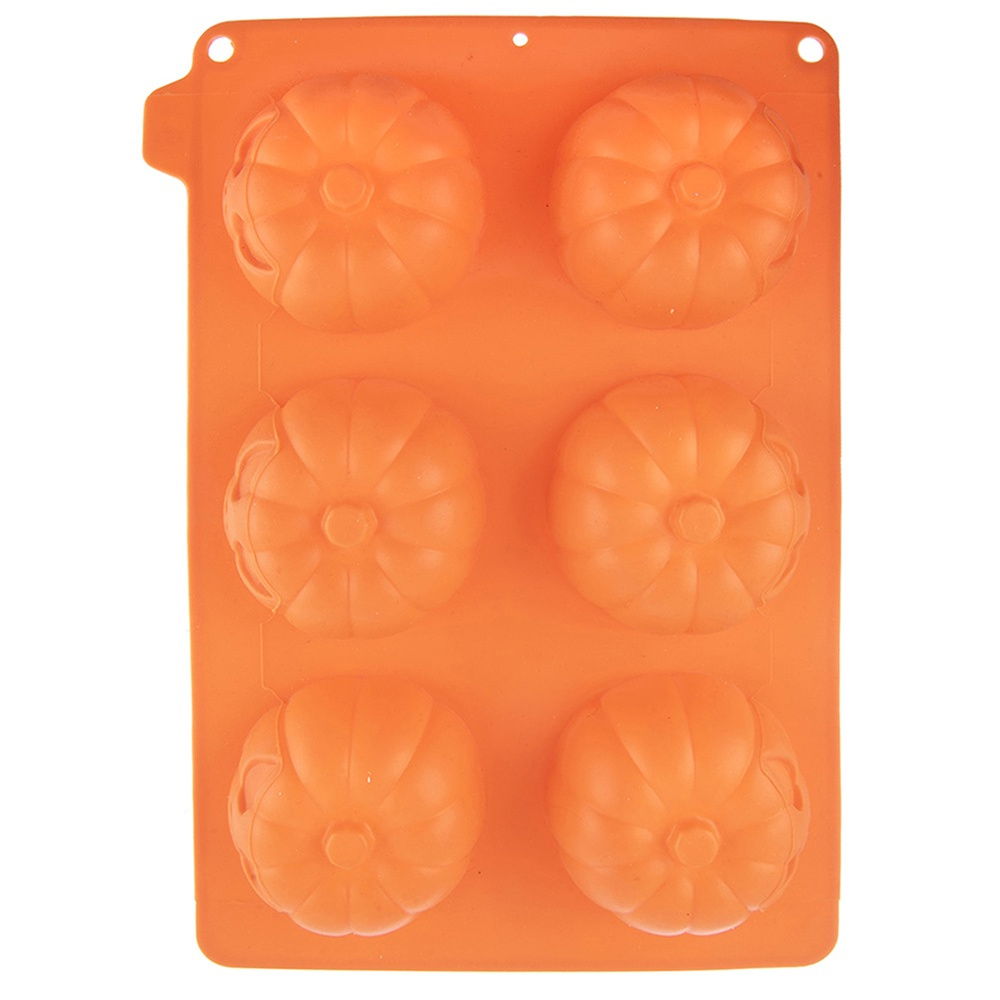 Forma do pieczenia ciastek w kształcie dyni - Forma do pieczenia 6 szt. ciasteczek lub babeczek w kształcie Halloweenowej dyni. Forma ma wymiary 27 x 18 x 4 cm. Z jej pomocą przygotujesz ciasteczka lub babeczki idealne na Halloween. Forma zapewni efektowny wygląd gotowych ciastek o średnicy 7 cm.