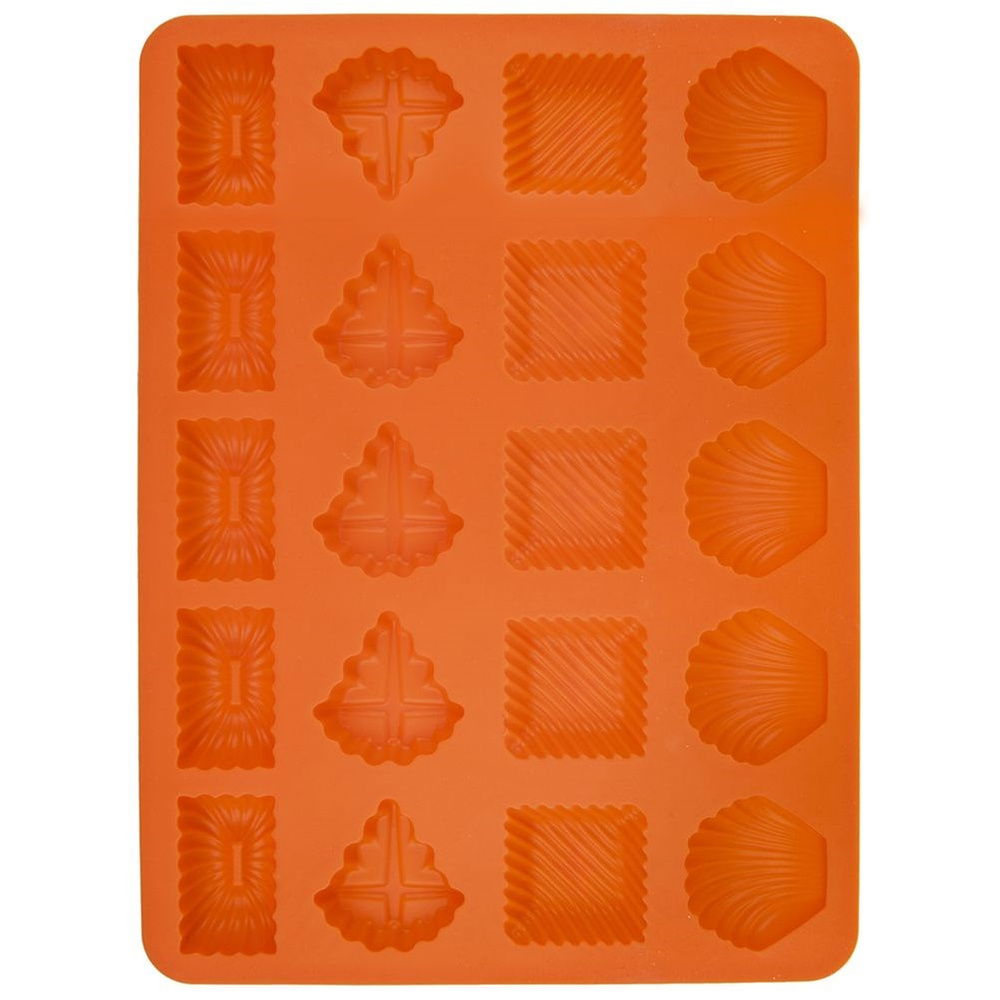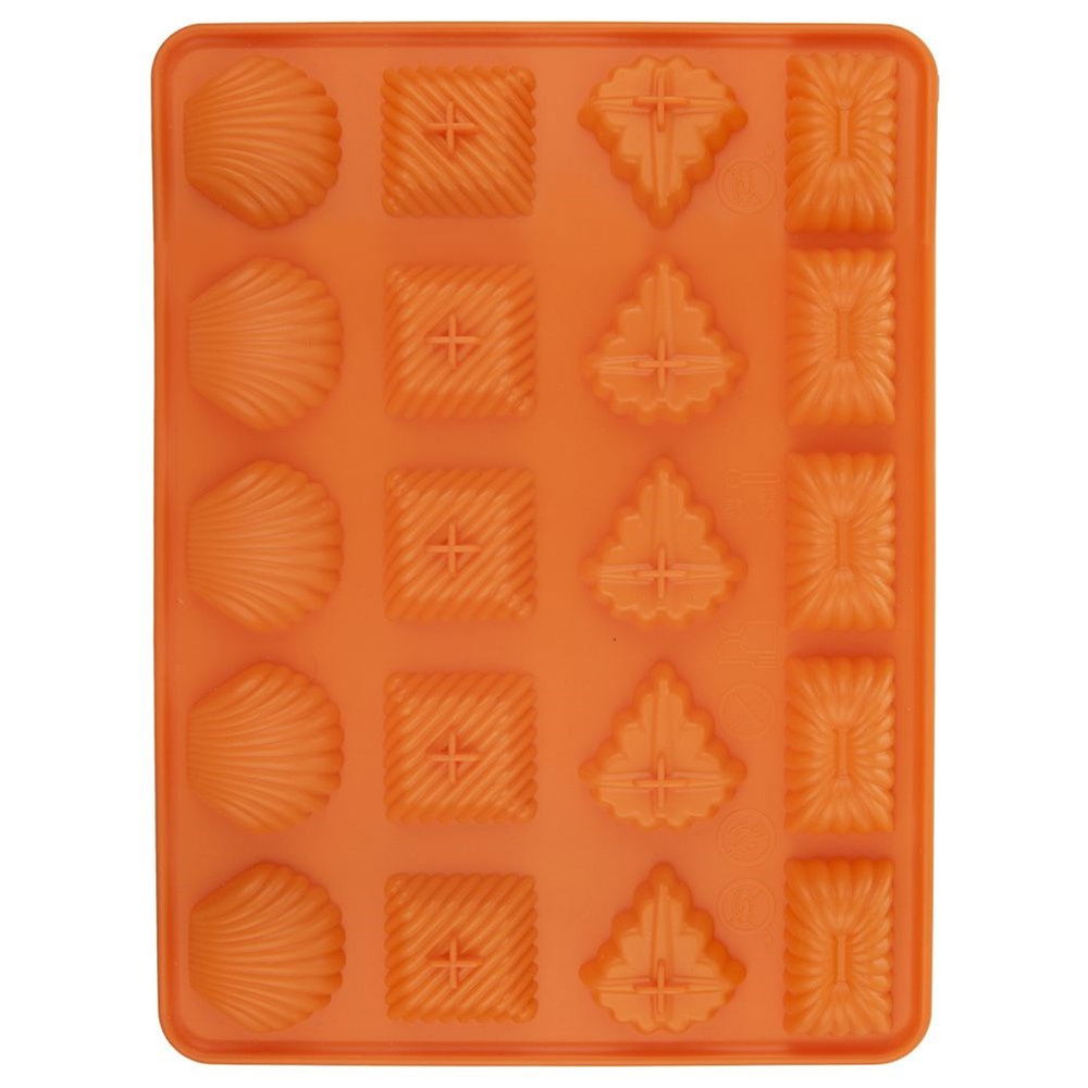 Silikonowa foremka pozwalająca upiec 20 kruchych ciastek. Możemy przygotować w niej ciasteczka, praliny, a także czekoladki w różnym kształcie. Foremka nie wchłania zapachów i smaków. Ciasto nie przywiera, idealnie się wyciąga. Do wypieku nie używa się żadnego tłuszczu czy mąki. Forma silikonowa jest lekka, elastyczna, zajmuje mało miejsca i jest odporna na zmiany temperatury. Bardzo dobrze przewodzi ciepło.
