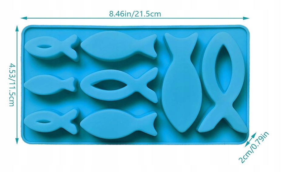Wielofunkcyjna silikonowa foremka na rybę: silikonowa foremka na rybę może być używana do robienia świec, kostek lodu, mydła, a także do pieczenia ciast. Ta silikonowa foremka na rybę nadaje się do robienia ozdób na komunie i chrzciny.