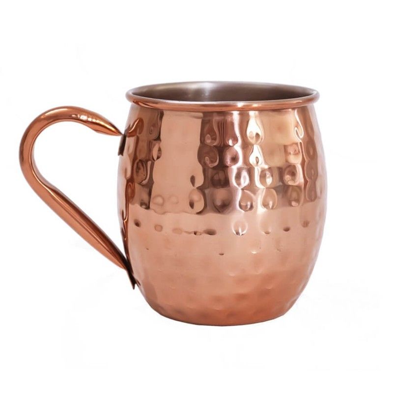 Według Ajurwedy i badań naukowych miedź reaguje pozytywnie z wodą niegazowaną, natomiast z większością innych płynów reaguje negatywnie - zwłaszcza z alkoholem. Kierując się tymi zasadami, a jednocześnie zachowując estetykę tradycyjnego kubka Moscow Mule na pierwszym planie, wykonaliśmy kubek ręcznie, z czystej stali nierdzewnej z błyszczącym miedzianym wykończeniem na zewnątrz. Ponadto, wyposażony w solidny uchwyt ułatwiający trzymanie, ten elegancki kubek jest idealny do serwowania napojów mieszanych.