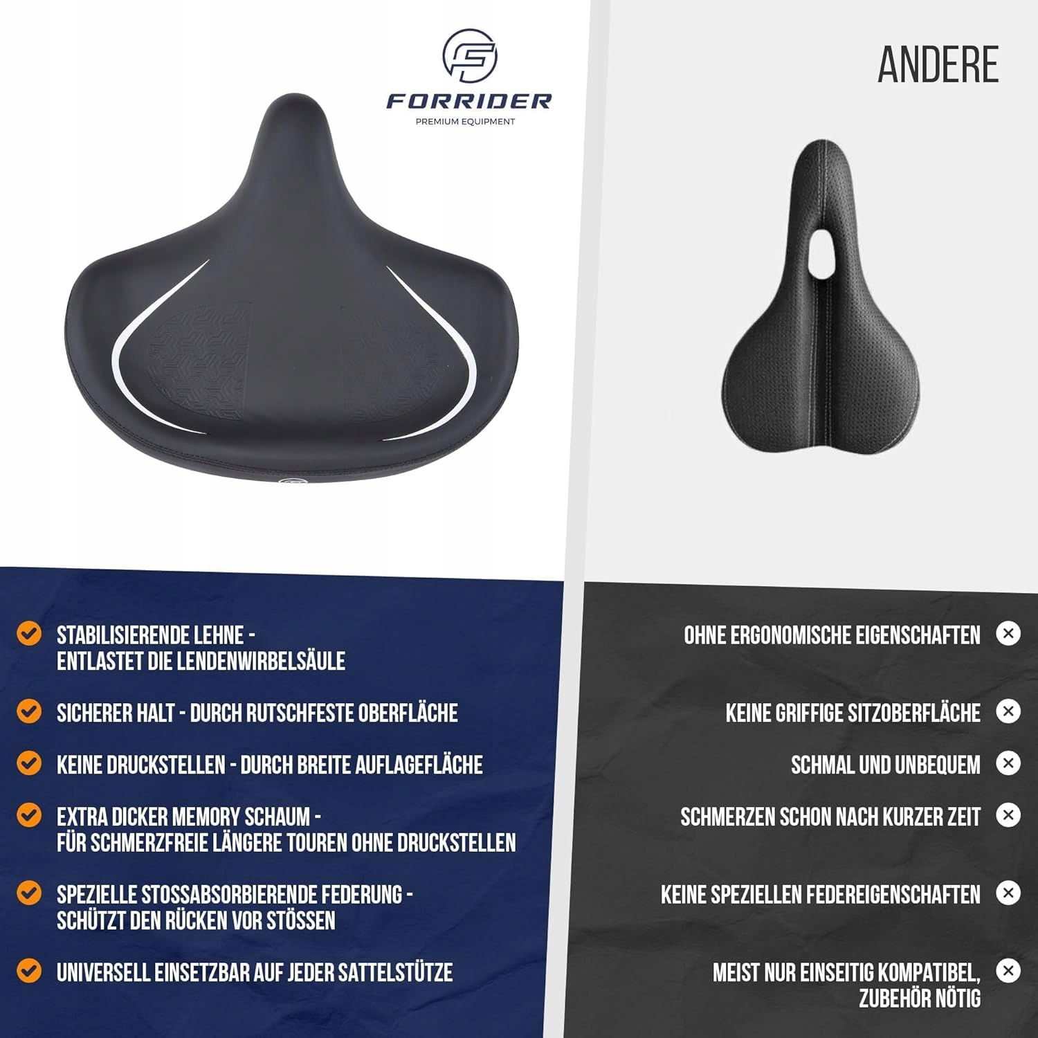 FORRIDER DUŻE Wygodne siodełko ergonomiczne z podparciem pośladkowym 33CM