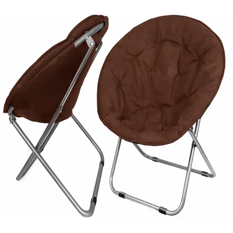 Krzesło turystyczne z oparciem ENERO Fotel Moon brązowy łączy w sobie funkcjonalność z modnym designem, tworząc idealną przestrzeń do relaksu w domu, na tarasie lub w ogrodzie. Okrągła forma sprawia, że siedzisko otula Twoje ciało i pozwala Ci w pełni się zrelaksować. Składana konstrukcja ułatwia przechowywanie oraz transport, dzięki czemu bez problemu zabierzesz fotel tam, gdzie potrzebujesz chwili wytchnienia.