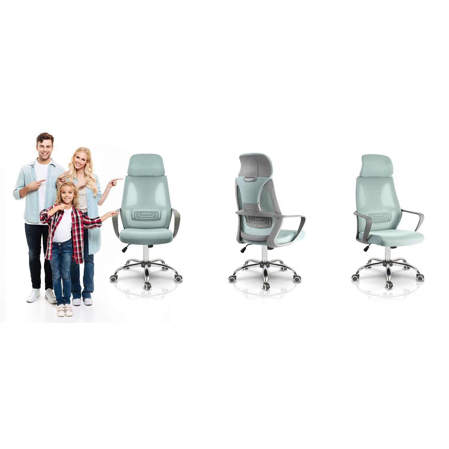 Fotel biurowy z mikrosiatką Praga - jasnoniebieski