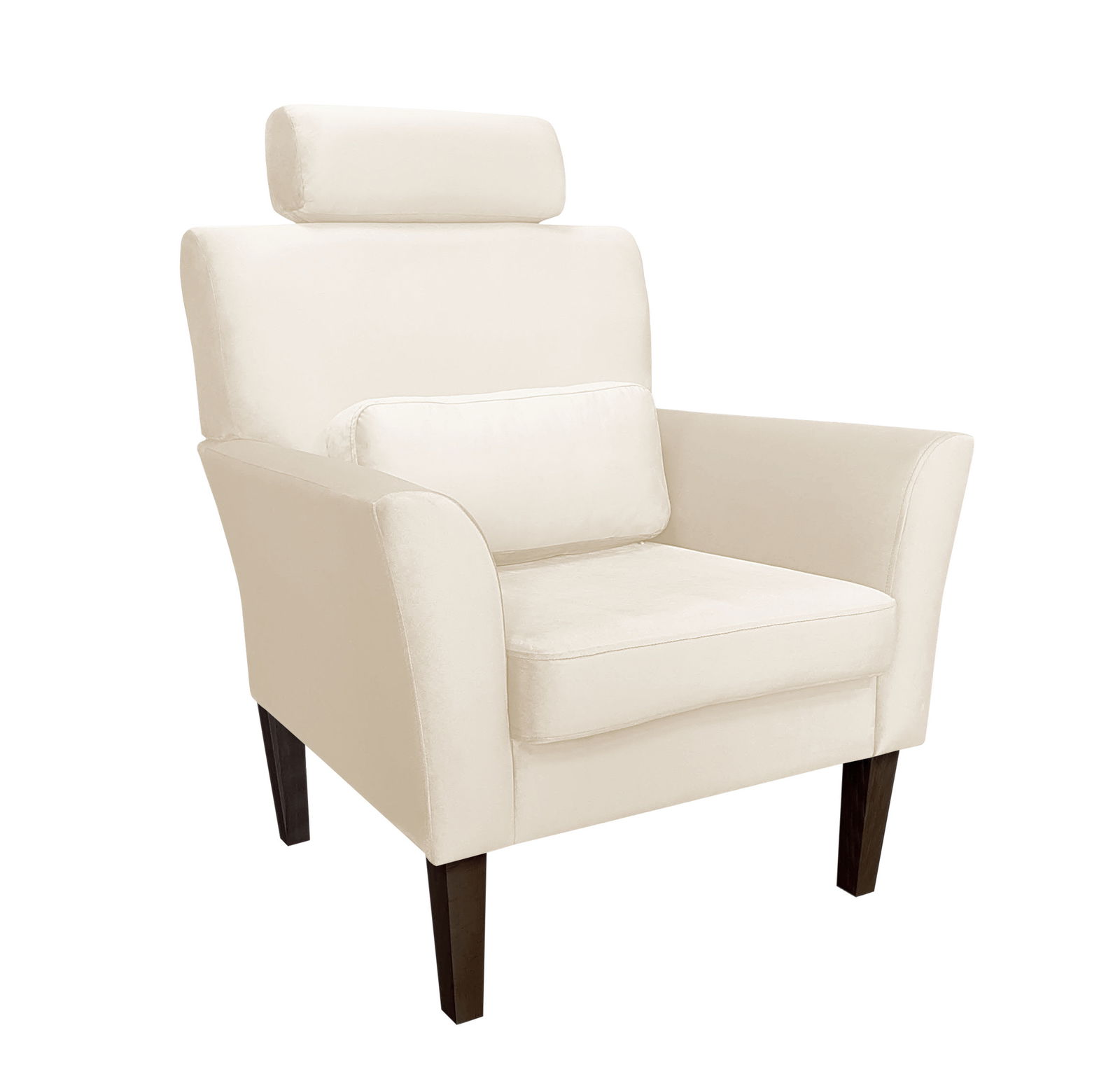 Fotel został wyposażony w drewniane nóżki, dostępne w 3 kolorach.