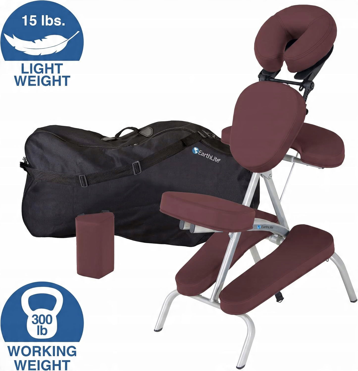 Fotel do masażu EARTHLITE Vortex to połączenie mobilności, komfortu i wytrzymałości. Dzięki innowacyjnej aluminiowej ramie, krzesło waży zaledwie ok. 6,8 kg, co czyni je jednym z najlżejszych foteli do masażu na rynku.