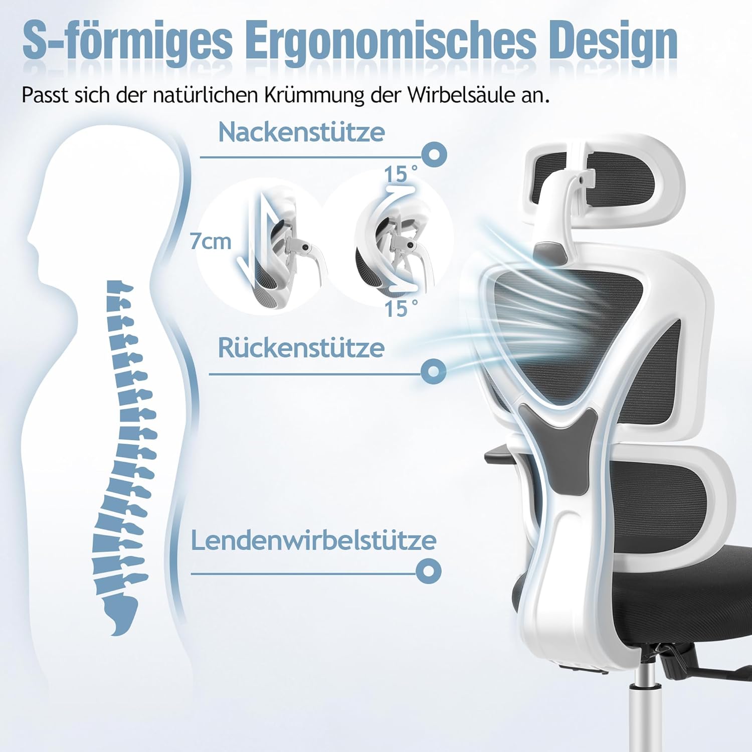 Ergonomiczne krzesło biurowe, które dostosowuje się do Twojego kręgosłupa. Dzięki oparciu w kształcie litery S, zapewnia doskonałe wsparcie i komfort przez cały dzień pracy.