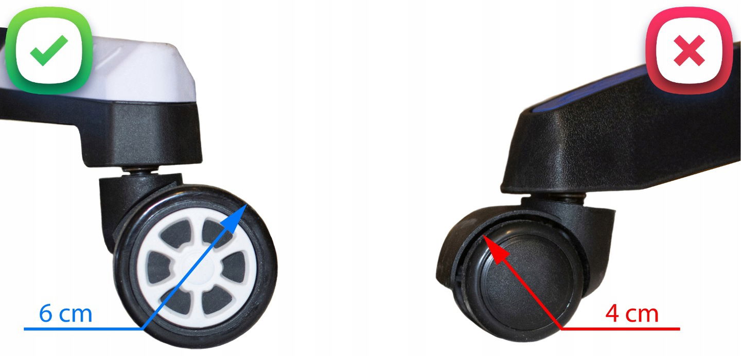 - Kółka fotela powlekane są wytrzymałym kauczukiem, który nie pozwoli na rysowanie i uszkodzenie podłogi