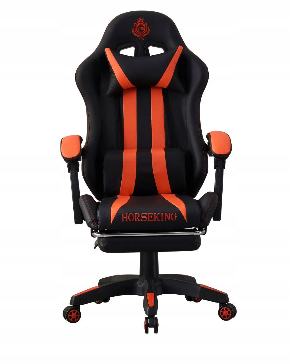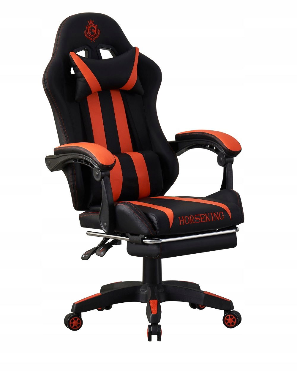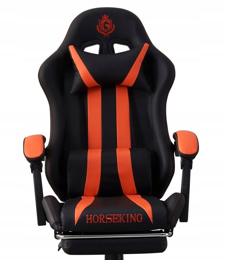 FOTEL GAMINGOWY HORSEKING Z PODNÓŻKIEM OBROTOWY DO GRY KRZESŁO CZERWONY