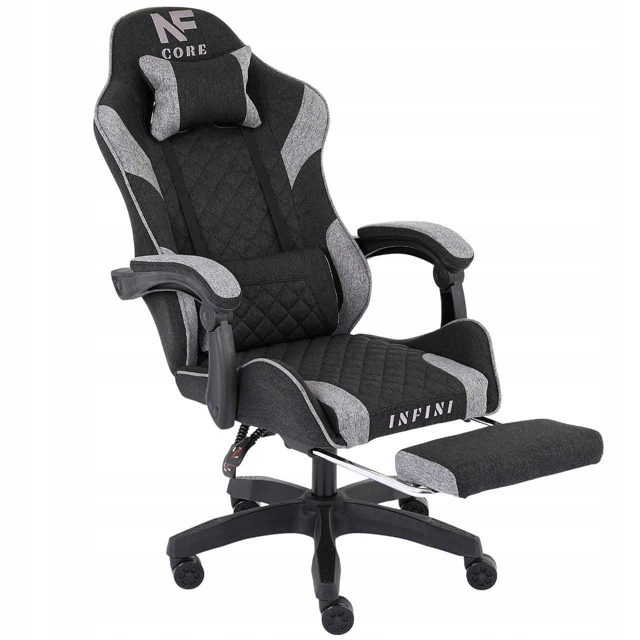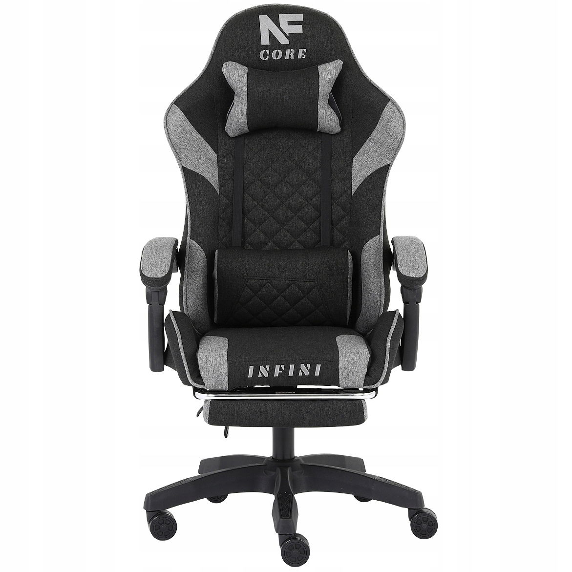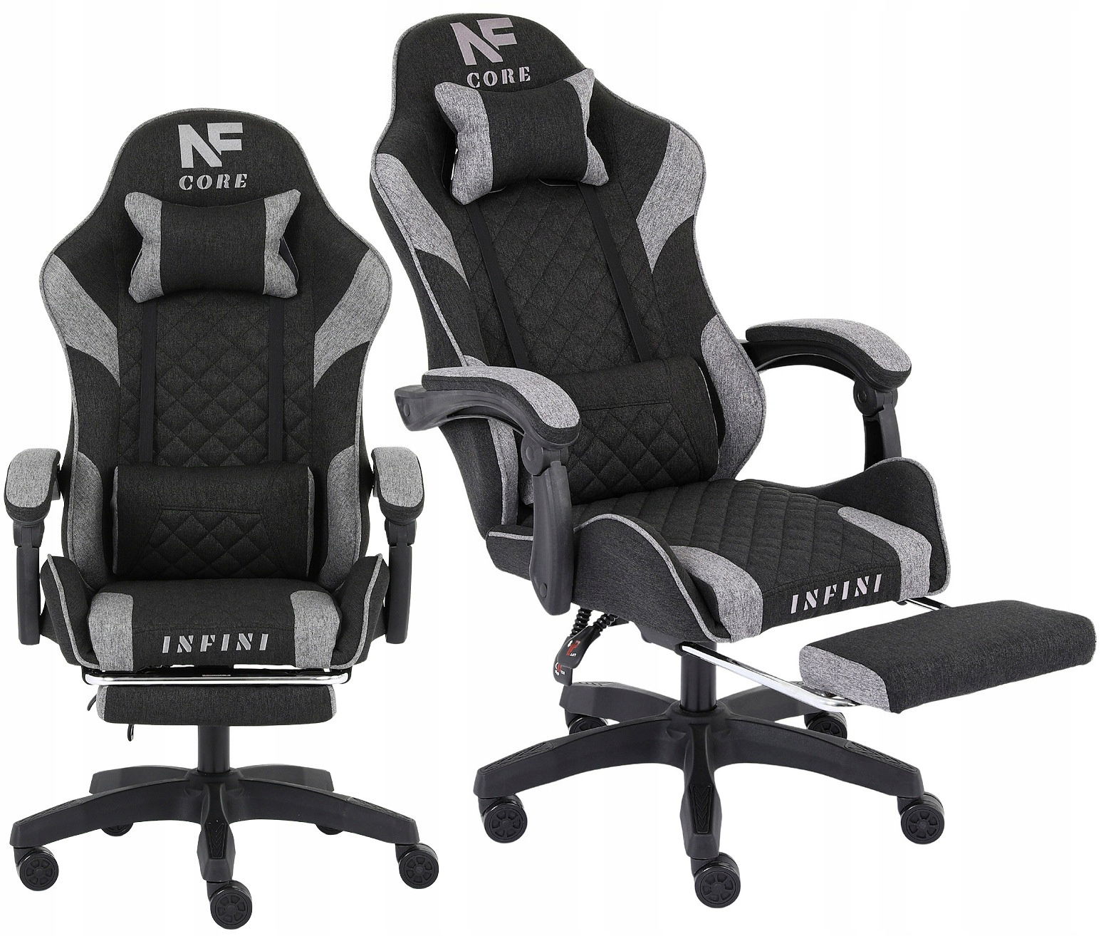 Fotel Gamingowy INFINI Core Dark Gray z tkaniny, wysuwany podnóżek w zestawie