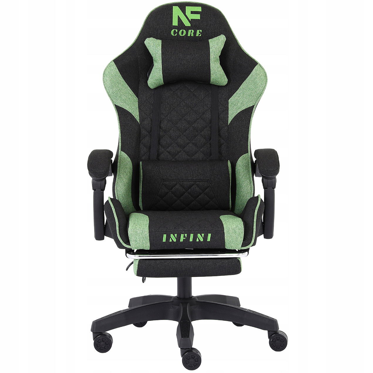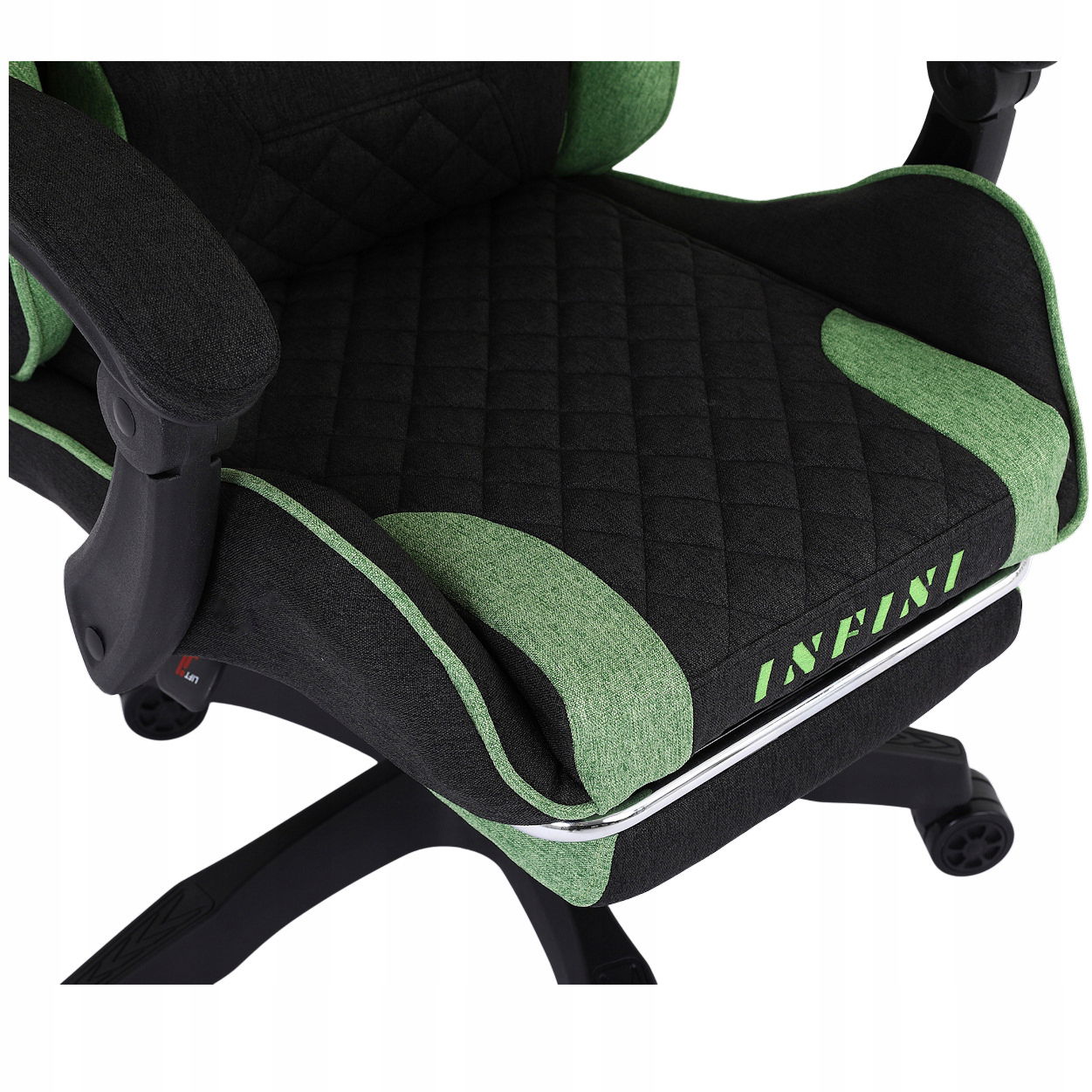 Fotel Gamingowy INFINI Core Green z tkaniny, podnóżek w zestawie