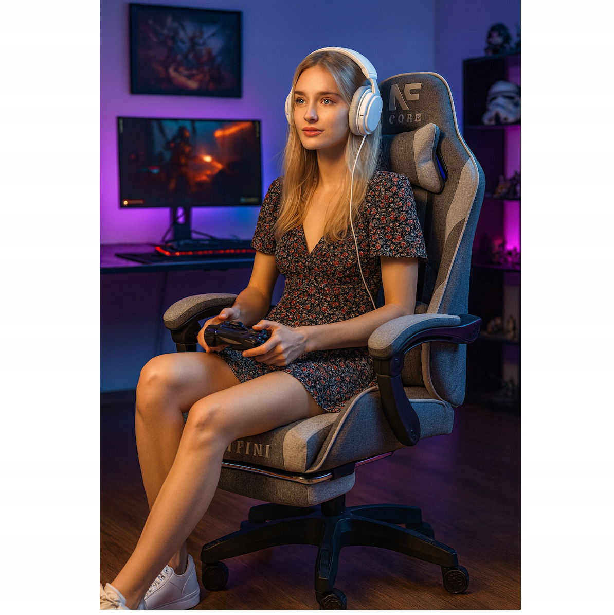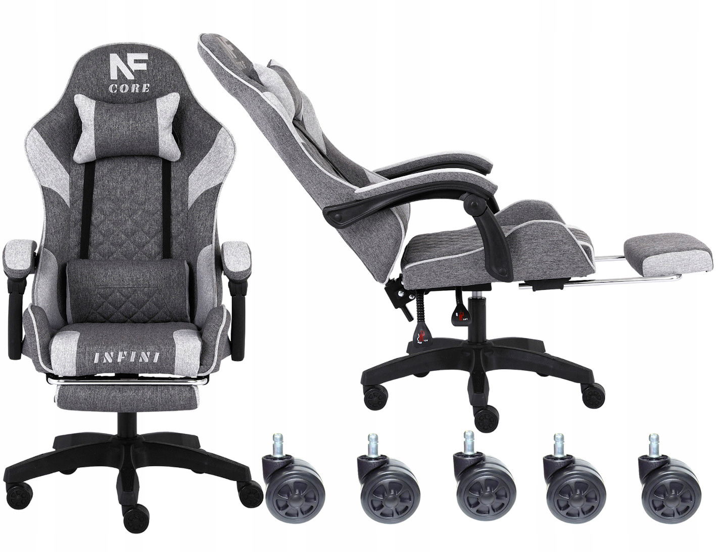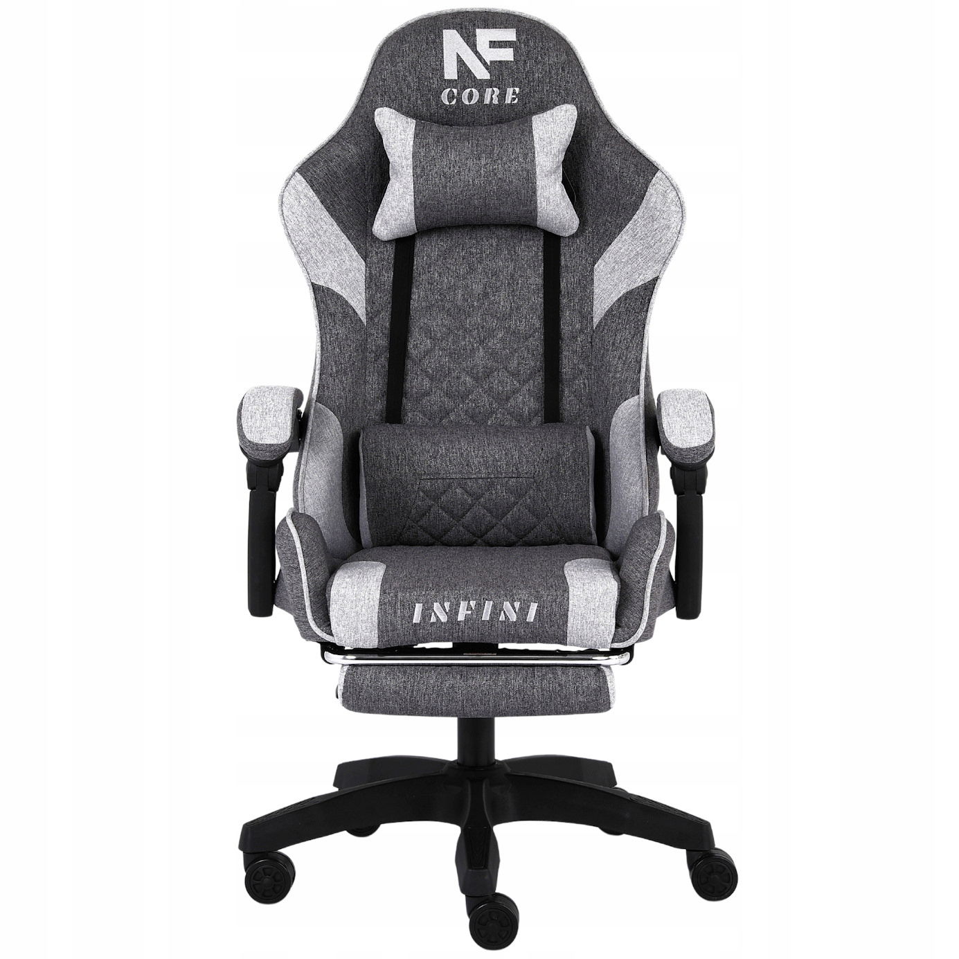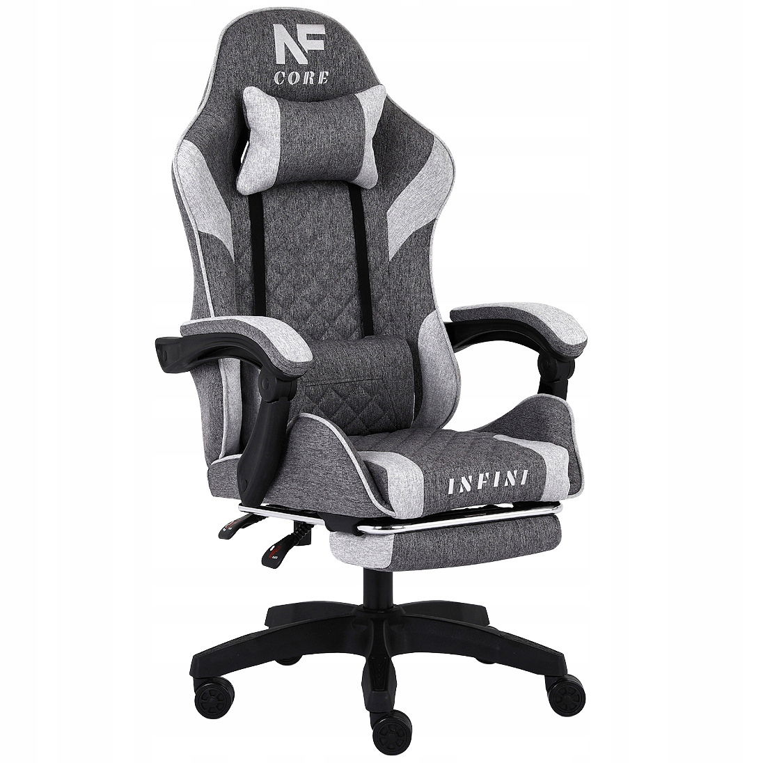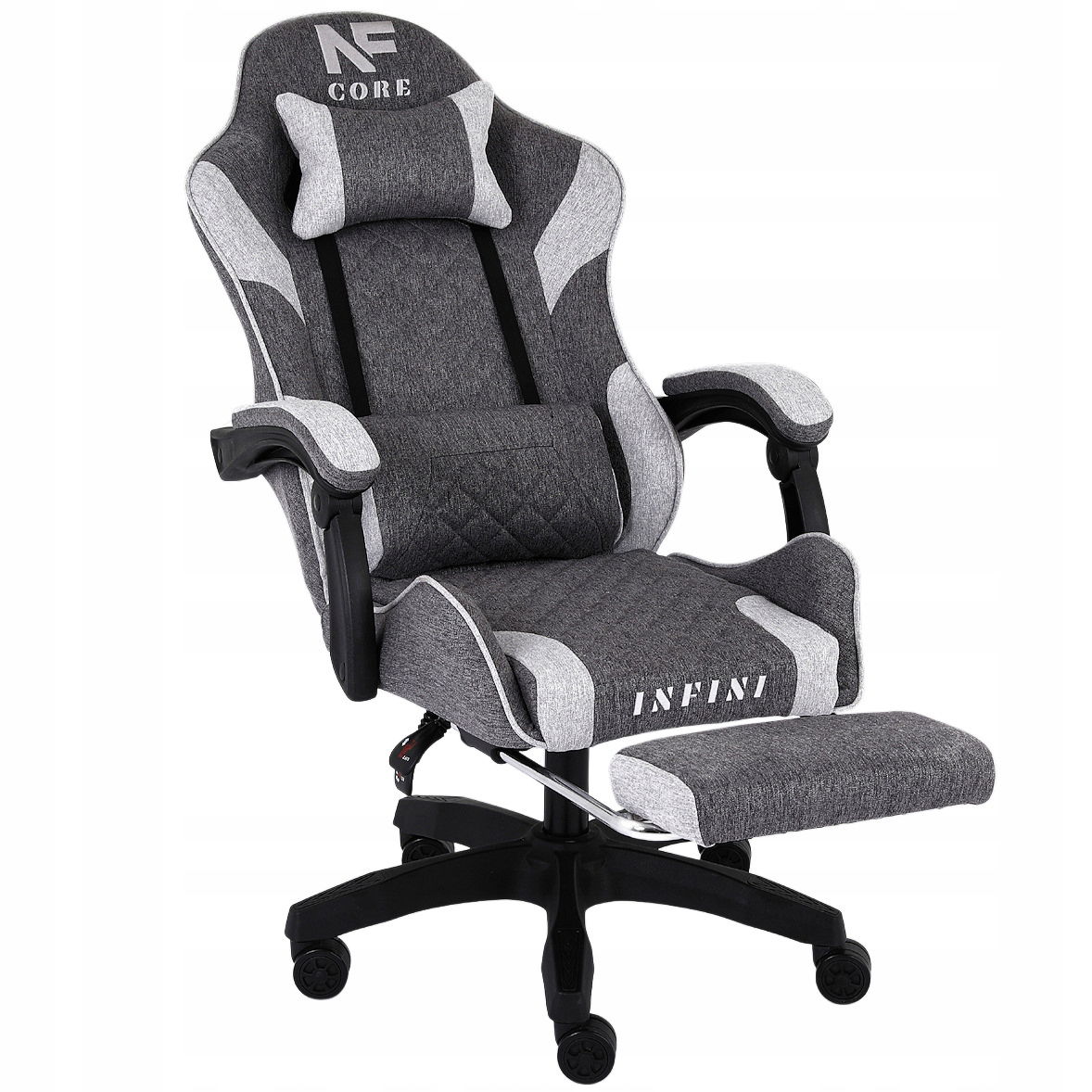 Fotel Gamingowy INFINI Core Light Gray z tkaniny, podnóżek w zestawie