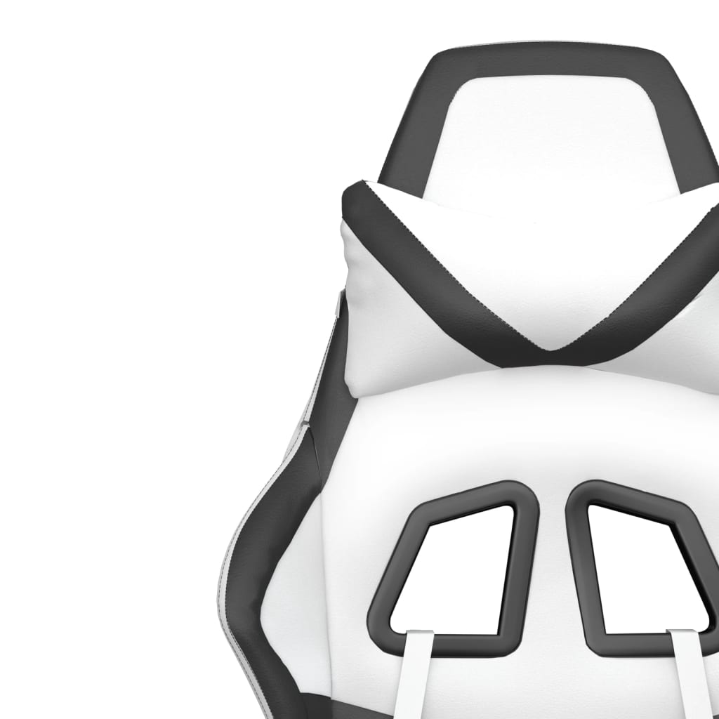 Fotel gamingowy z podnóżkiem, biało-czarny, sztuczna skóra