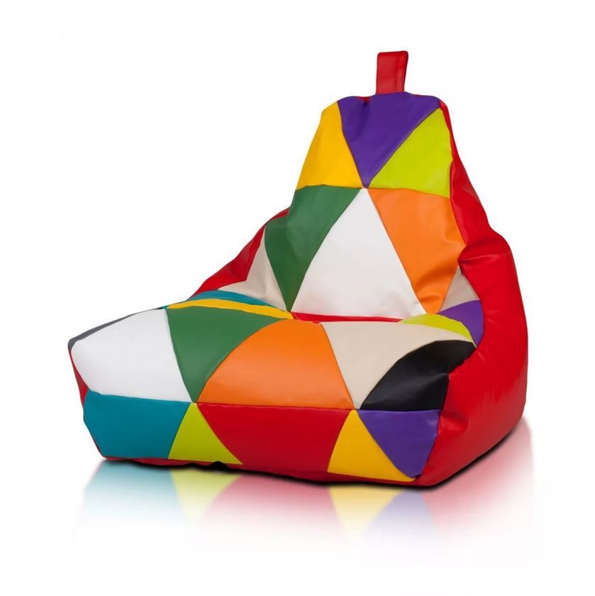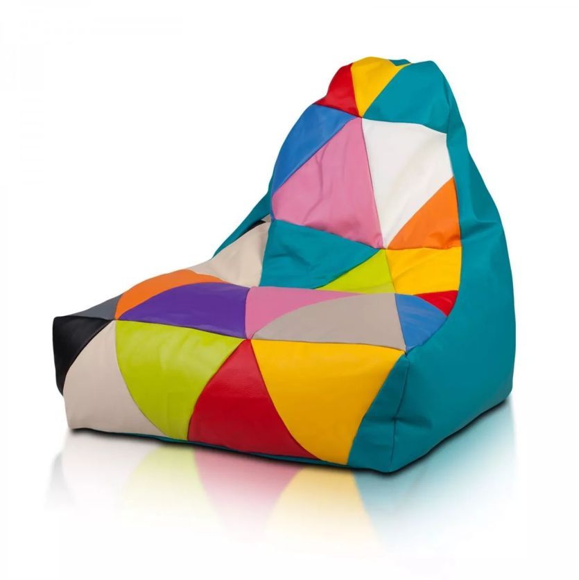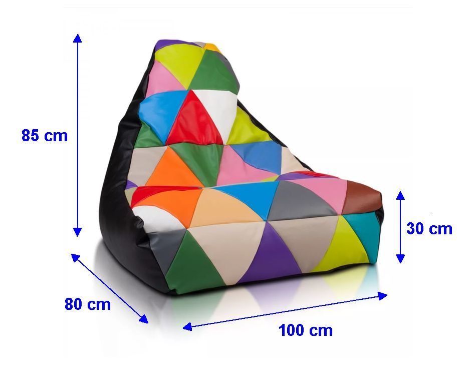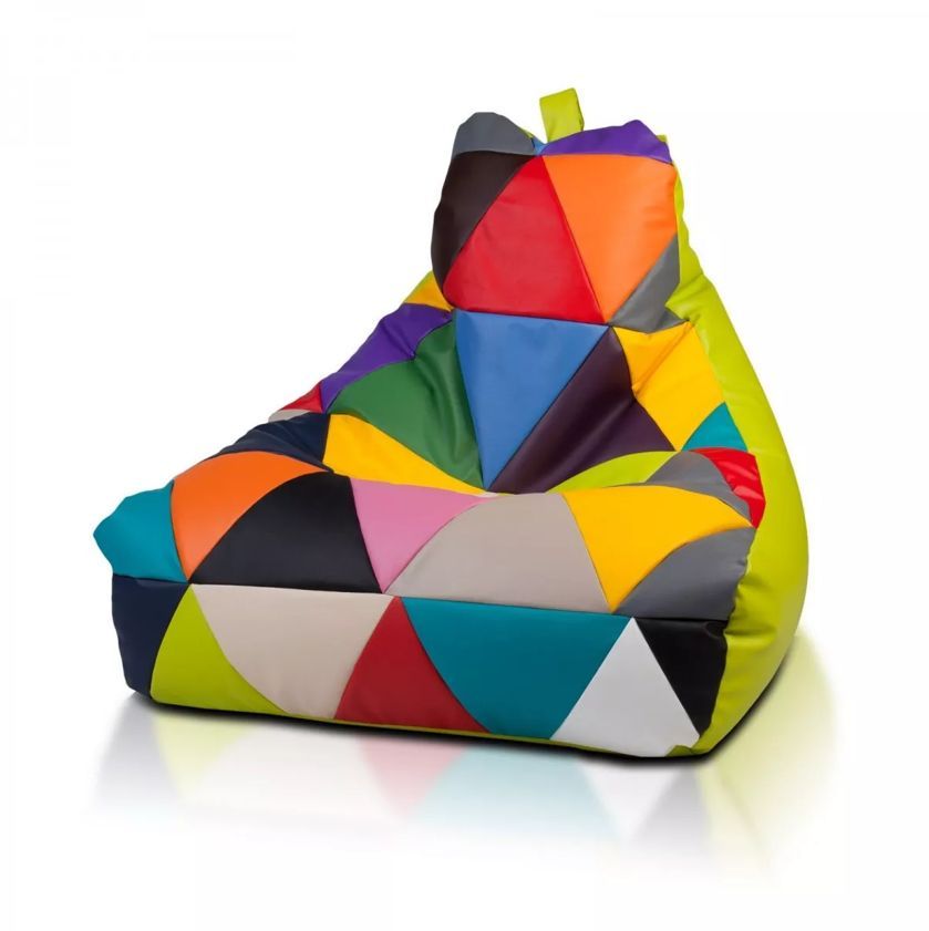 Fotel Keiko M Ekoskóra MIX 70x70 cm.Nowoczesny, kolorowy fotel do salonu z wysokim stabilnym oparciem.Elegancki element dekoracyjny w pokoju.Wykonany z ekoskóry - materiału miękkiego i przyjazny alergikom. Ekoskóra jest łatwa do utrzymania w czystości. Siedzisko i oparcie ozdobione wielokolorowymi trójkątami.Fotel wypełniony granulatem poliestyrenowym charakteryzującym się wysoką sprężystością i lekkością. Materiał ten idealnie dopasowuje się do ciała osoby siadającej.Zapewnia to dużą wygodę z korzystania i odpoczynek.