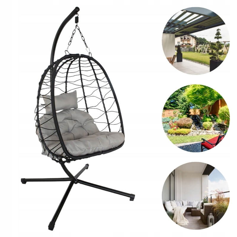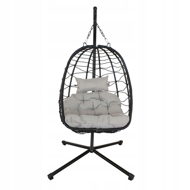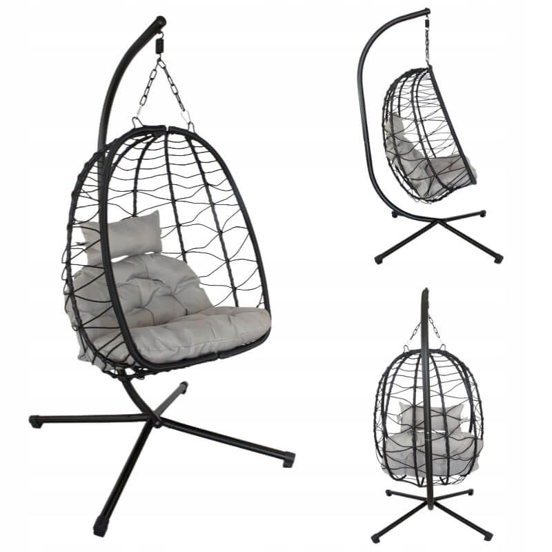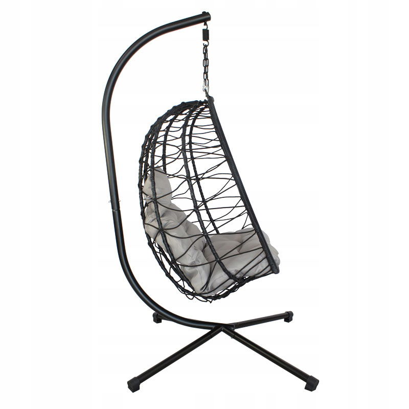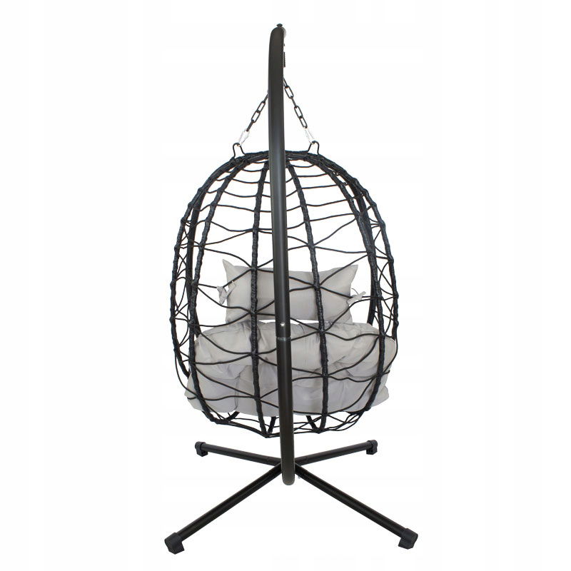 Fotel KOKON wiszący HUŚTAWKA kosz ogrodowy GNIAZDO szary CZARNY na taras