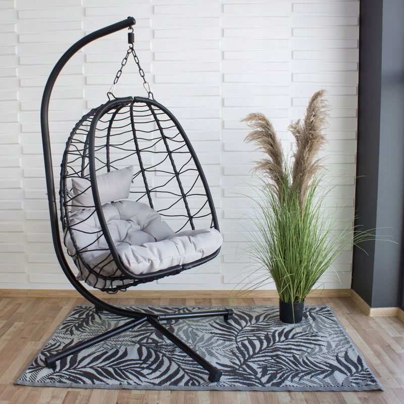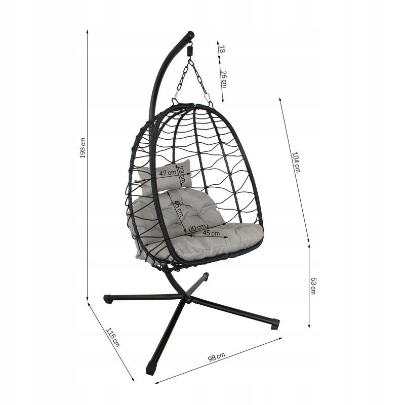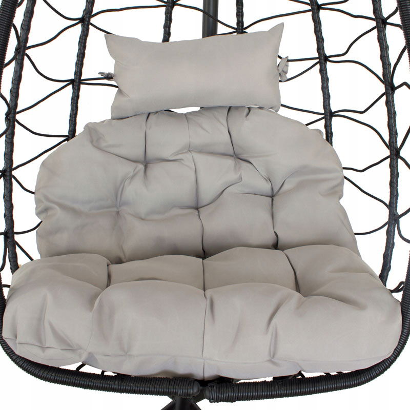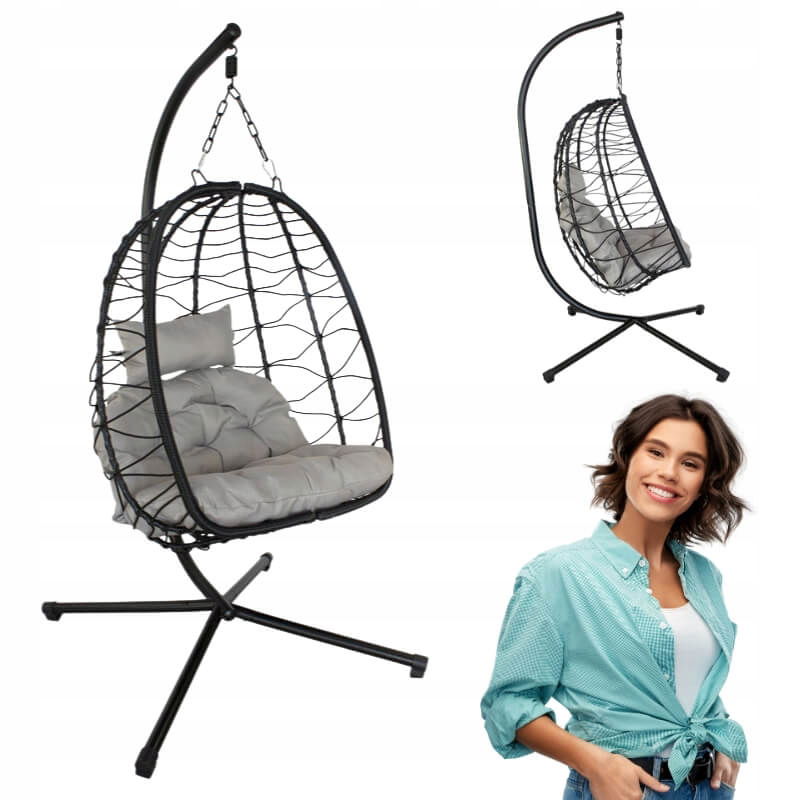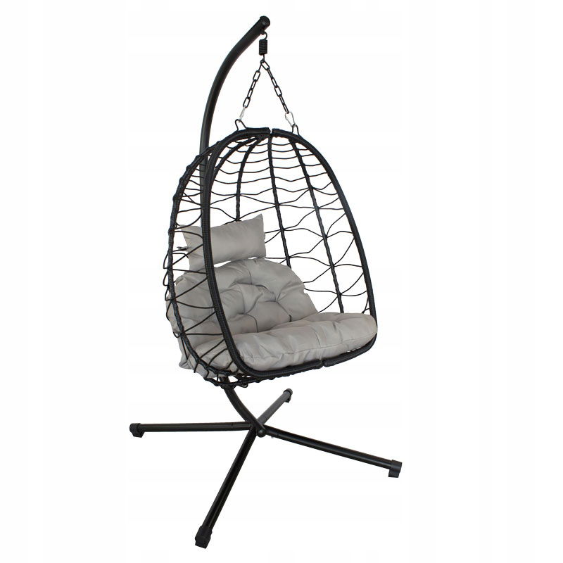 Fotel KOKON wiszący HUŚTAWKA kosz ogrodowy GNIAZDO szary CZARNY na taras