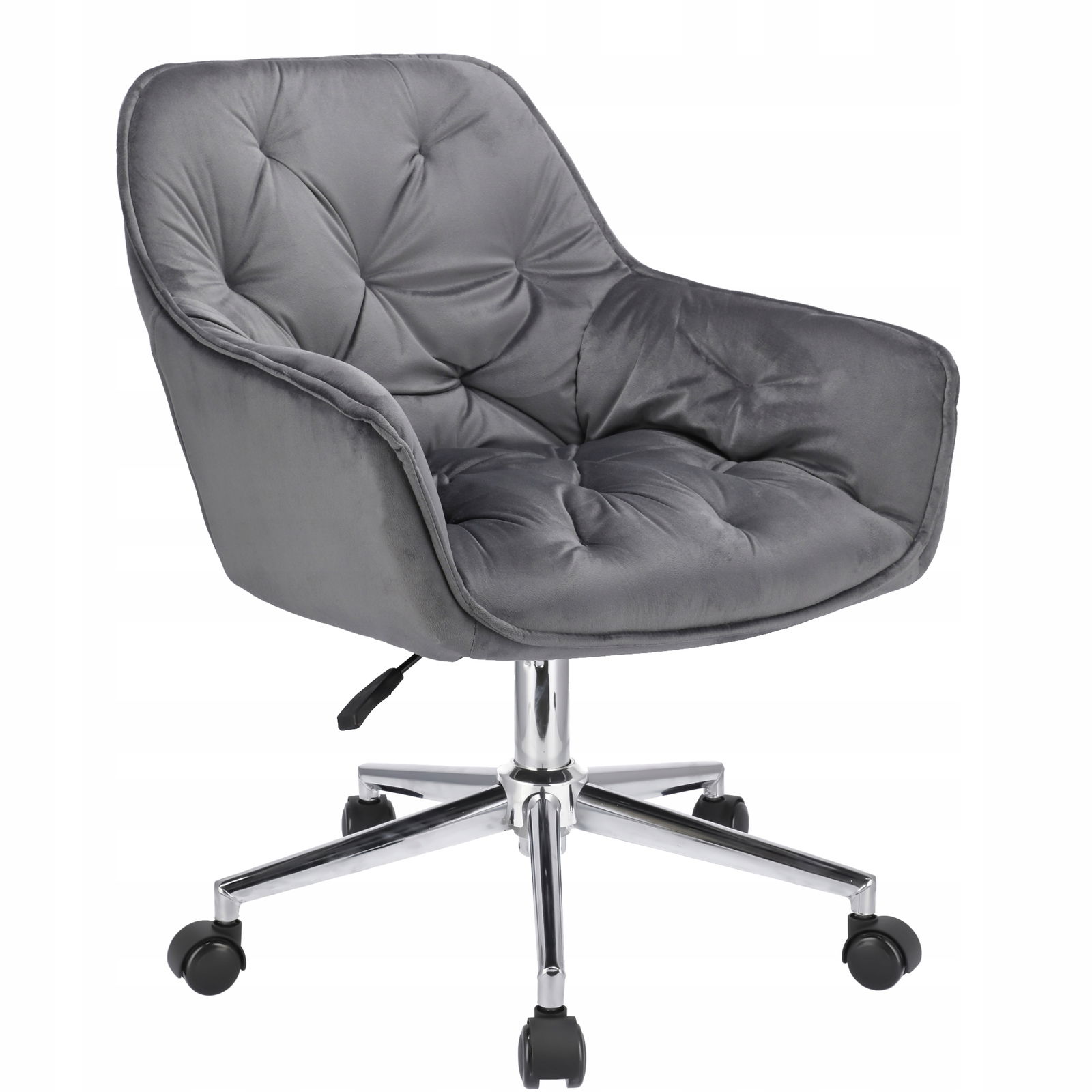 Elegancki fotel biurowy obity miękkim welurem, łączący nowoczesny design z wyjątkowym komfortem. Regulacja wysokości i 360-stopniowy obrót zapewniają wygodę podczas pracy. Solidna podstawa na pięciu kółkach gwarantuje stabilność i mobilność. Idealny do biur i domowych gabinetów, dodający przestrzeni stylu i klasy.