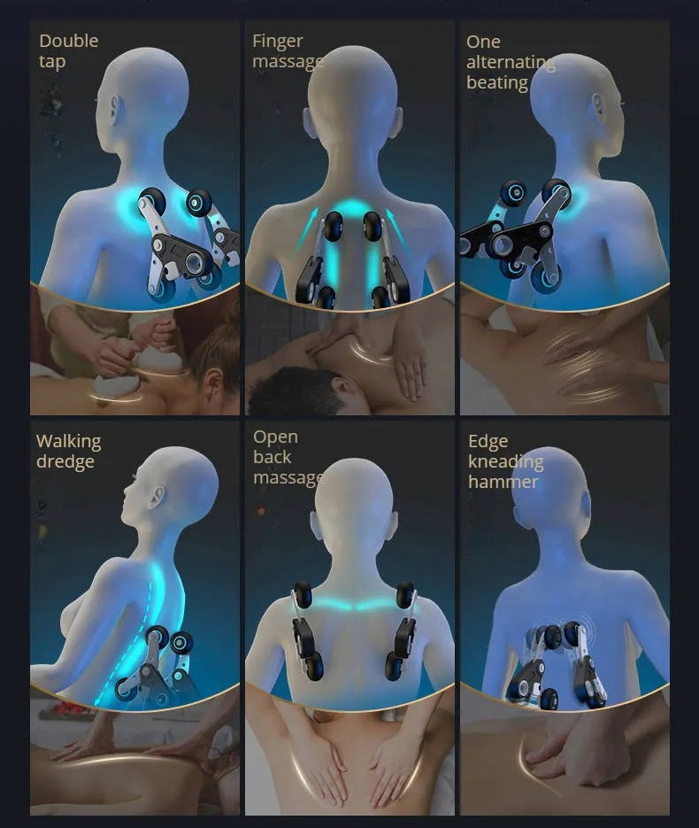 System S oferuje wiele różnych rodzajów masażu, w tym shiatsu, ostukiwanie - oklepywanie ,uciskanie , wałkowanie , masaż pneumatyczny pompowanym powietrzem , masaż wibracyjny i wiele innych. Użytkownik może wybrać pożądany rodzaj masażu i dostosować intensywność i ustawienia w zależności od swoich indywidualnych potrzeb.