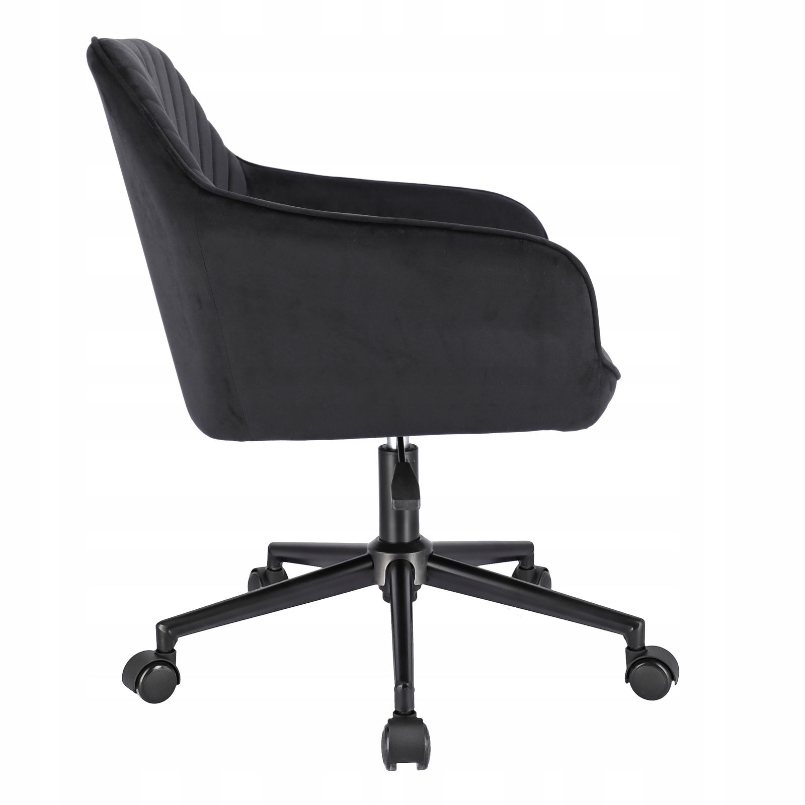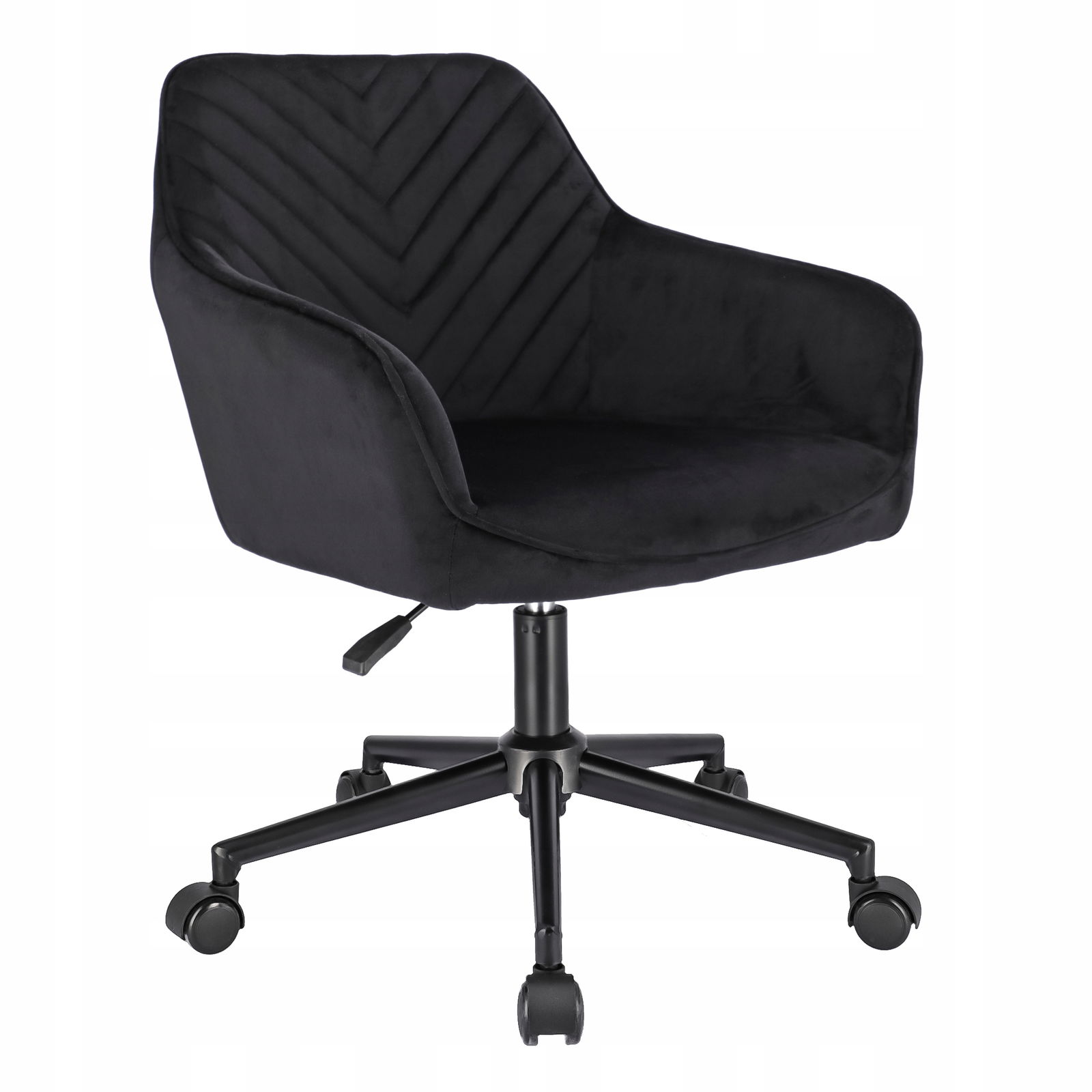 Elegancki fotel biurowy obity miękkim welurem, łączący nowoczesny design z wyjątkowym komfortem. Regulacja wysokości i 360-stopniowy obrót zapewniają wygodę podczas pracy. Solidna podstawa na pięciu kółkach gwarantuje stabilność i mobilność. Idealny do biur i domowych gabinetów, dodający przestrzeni stylu i klasy.