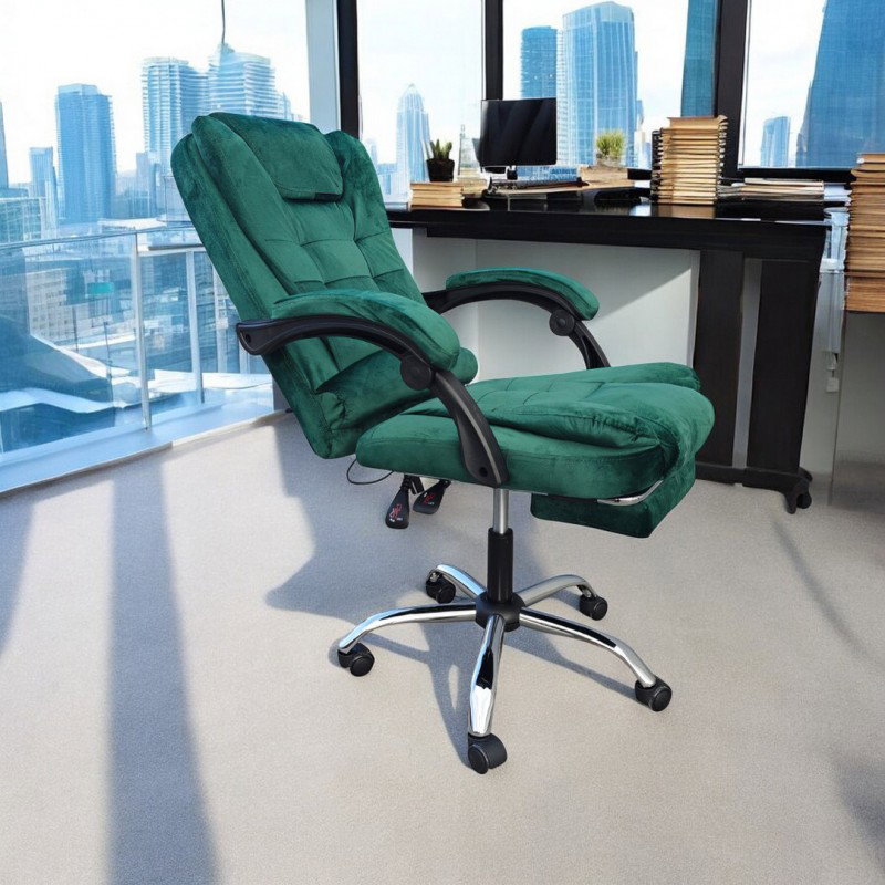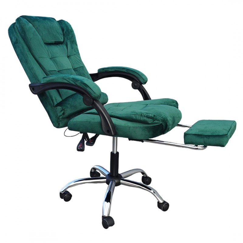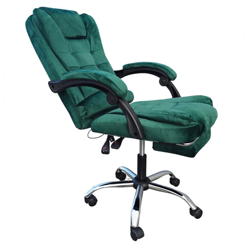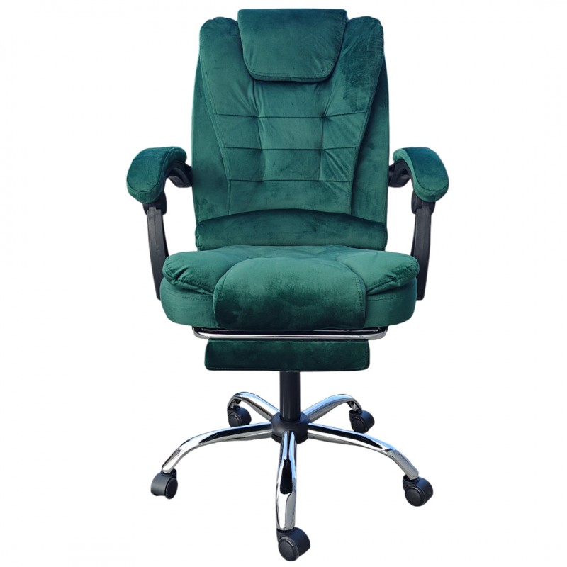 Fotel obrotowy BOSS z podnóżkiem - ZIELONY WELUR KO22ZIE-MAT