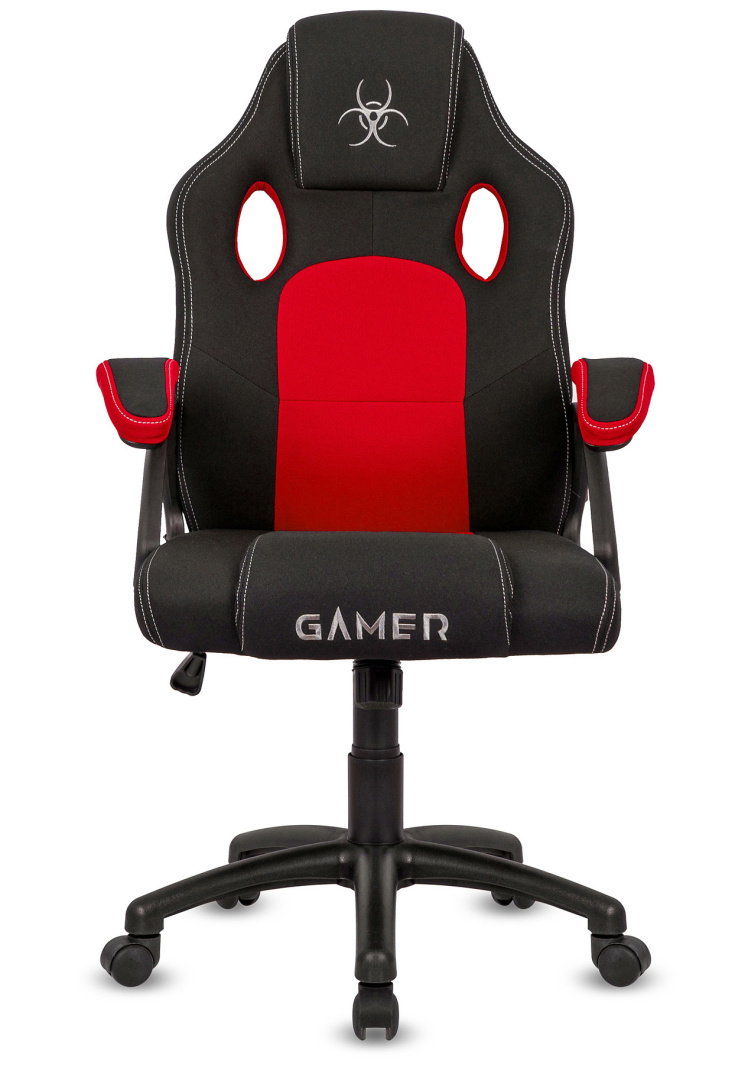 Fotel obrotowy, dla gracza, krzesło do biurka - CARRERA M RED FABRIC