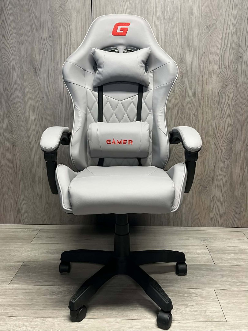 Fotel obrotowy, gamingowy, dla gracza, do biurka - EVO PU STONE FULL GREY - seria EVOLUTION z odchylanym oparciem.
