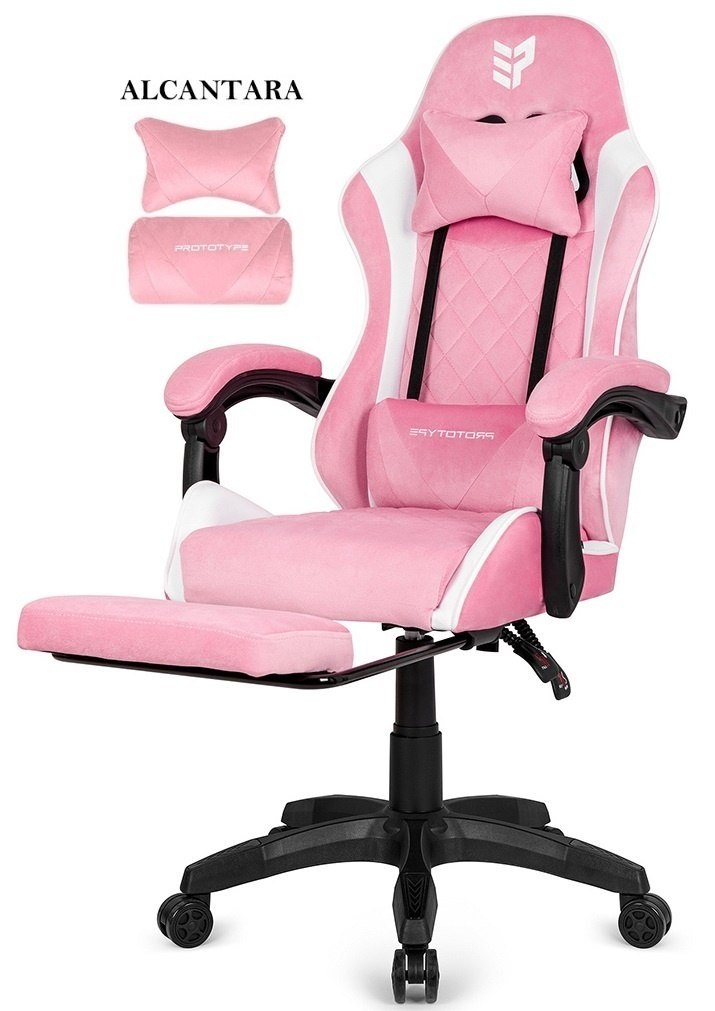 Fotel obrotowy gamingowy XL POKER PRO PINK + WHITE ALCANTARA